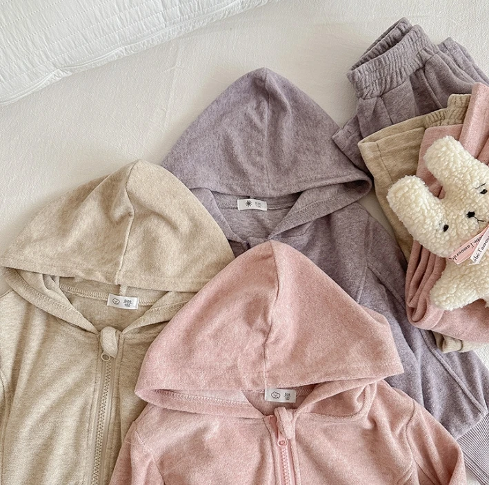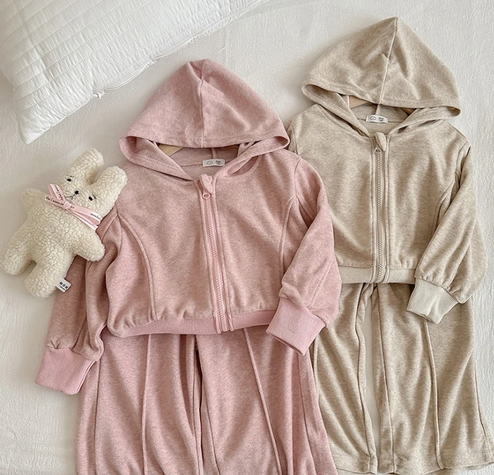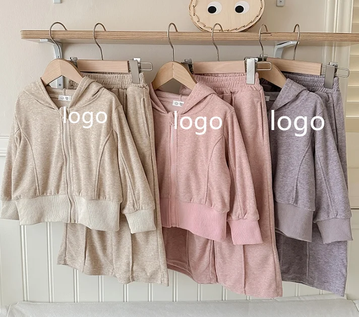 Customable Logo Girls' Autumn Outfit Set New Style Girls' Hooded Girls' Baby Candy Color Long Sleeved Fashionable Jacket Set