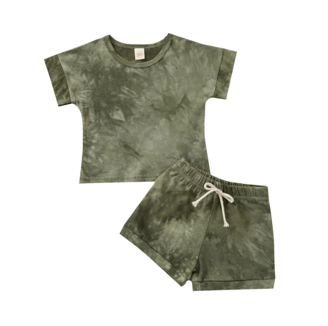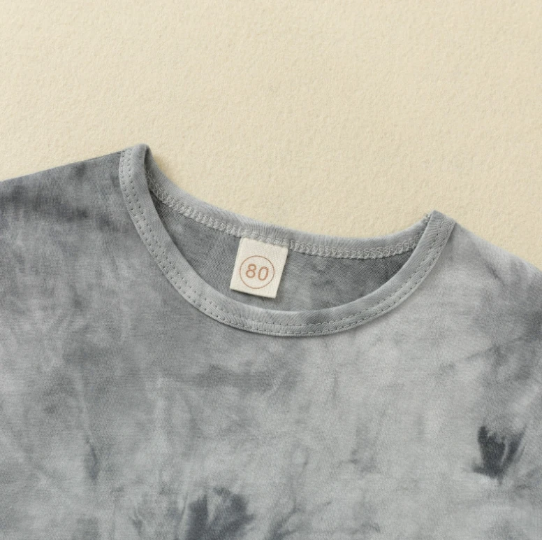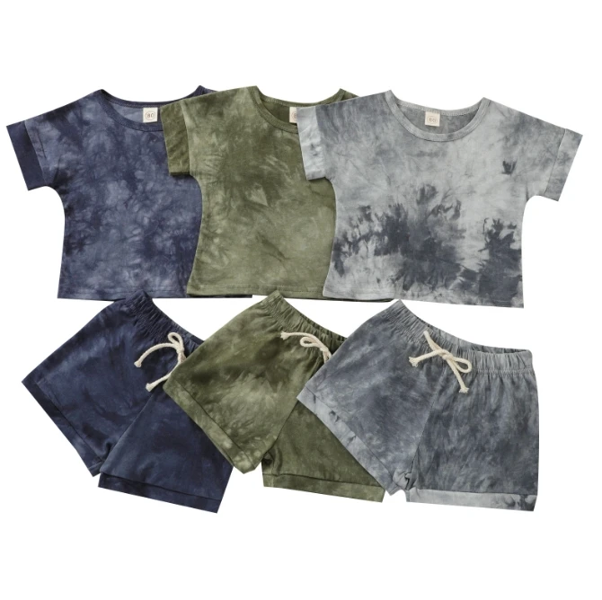 Summer Tie-Dye Elastic Baby Kids Clothing Sets O Neck Baby Boy Clothes 100%cotton Suit Kids Outfits custom logo
