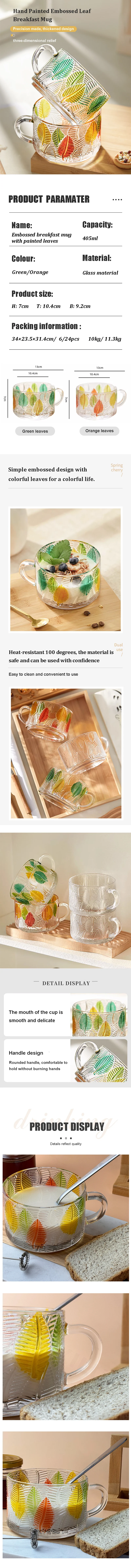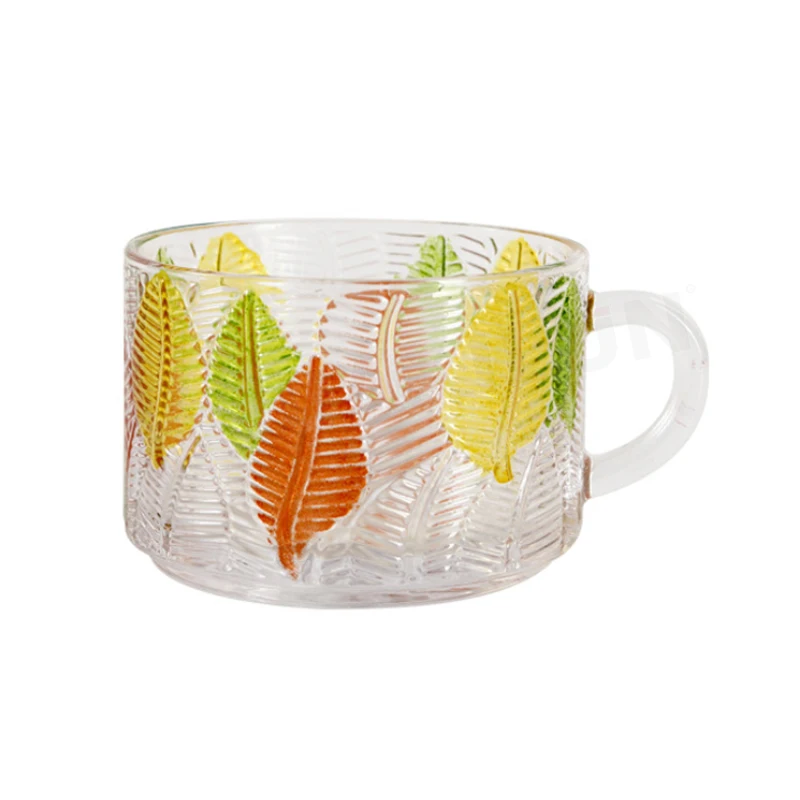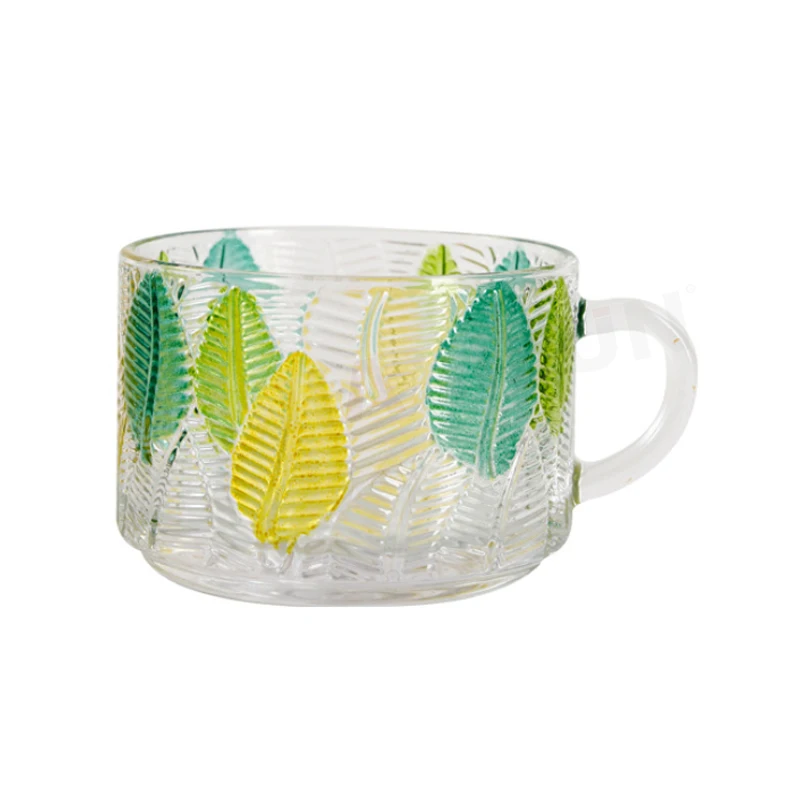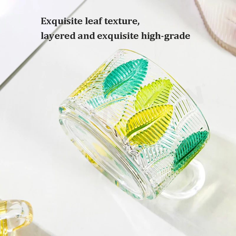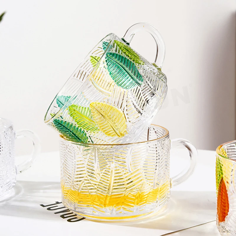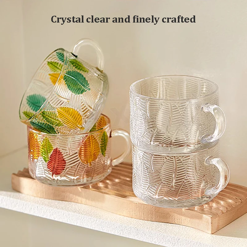 Classic Embossed Transparent Glass Breakfast Mug Modern Hot Painted Leaves Party Print Coffee Tea Cups Gift Recommendation