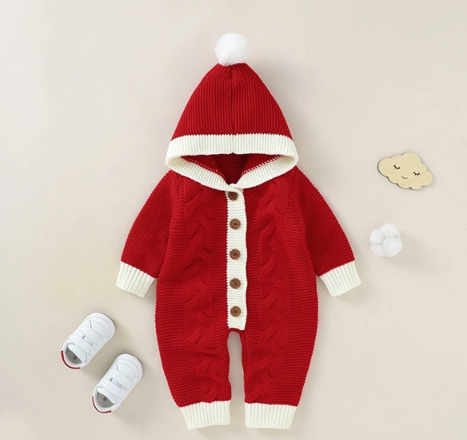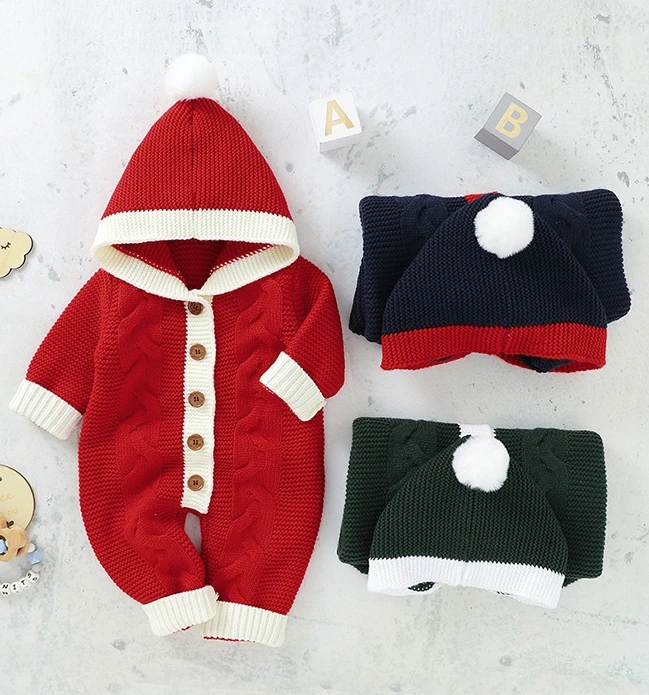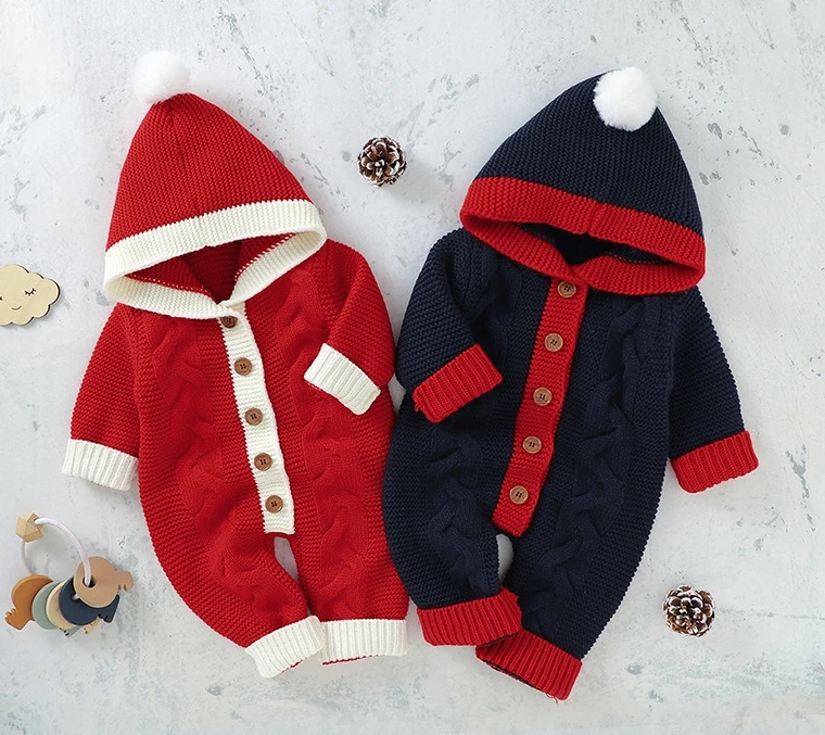 Hot Sales Baby Rompers Knitted Winter Infant Bebe Jumpsuit Overalls Cute Hooded Toddler Outfits Kids Clothes