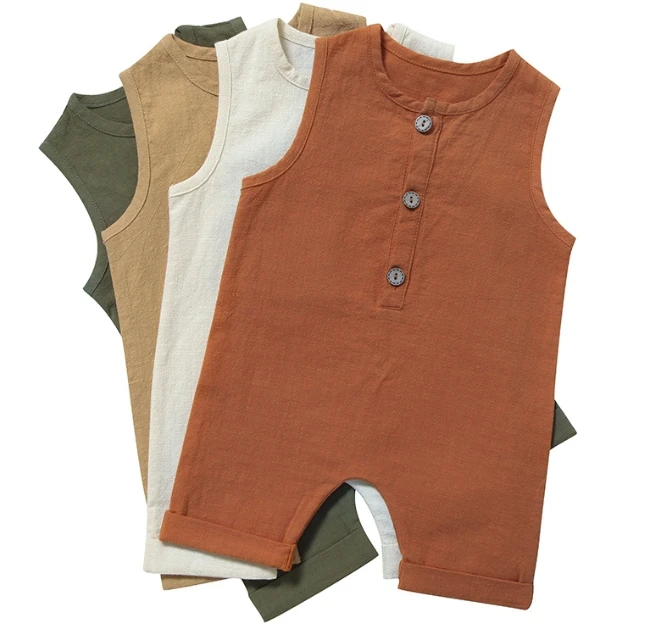 Summer Newborn Jumpsuit Cotton Hemp Fabric Infant Clothes Sleeveless Baby Romper