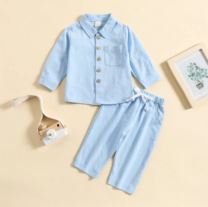 Unisex Baby Clothing 2024 Spring Autumn Children Long Sleeve Solid Ribbed Home Wear Top+Pants 2pcs Sets Kids Clothes Suits