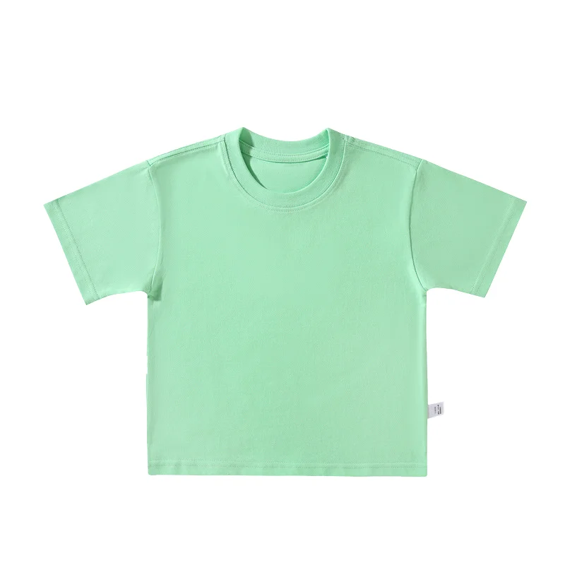 wholesaler Boutique Spring Autumn Solid Color Candy Color Children Clothes short Sleeve Cotton Casual Boys Girls T-shirts