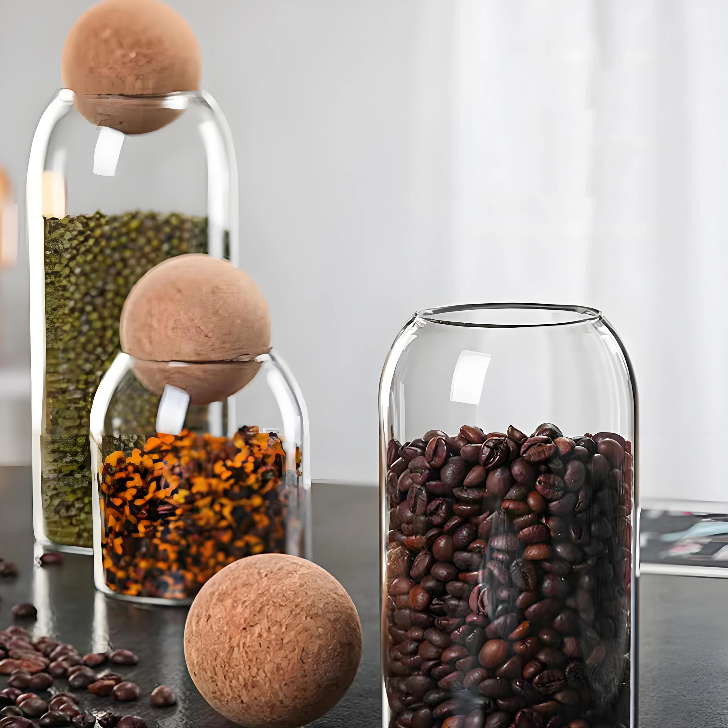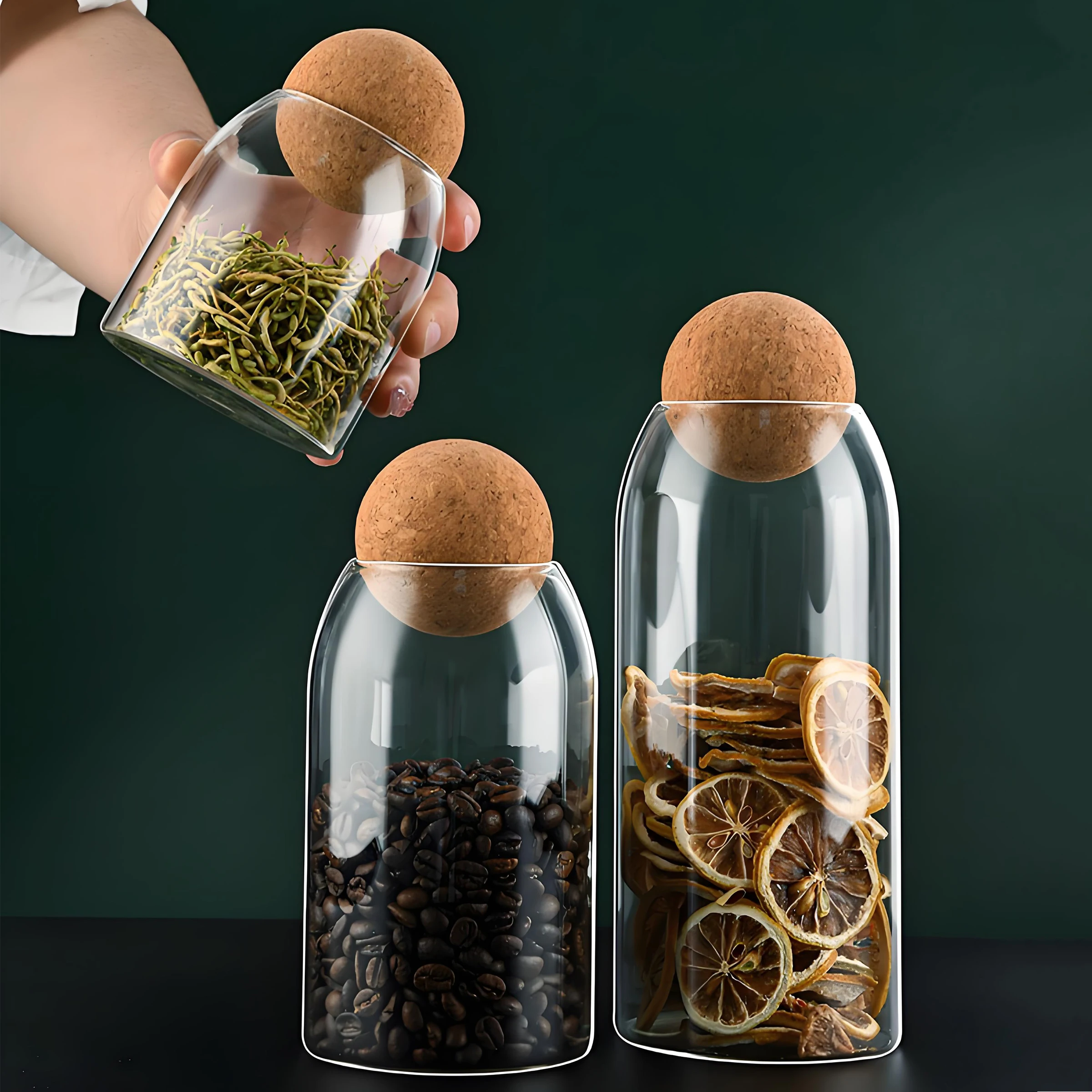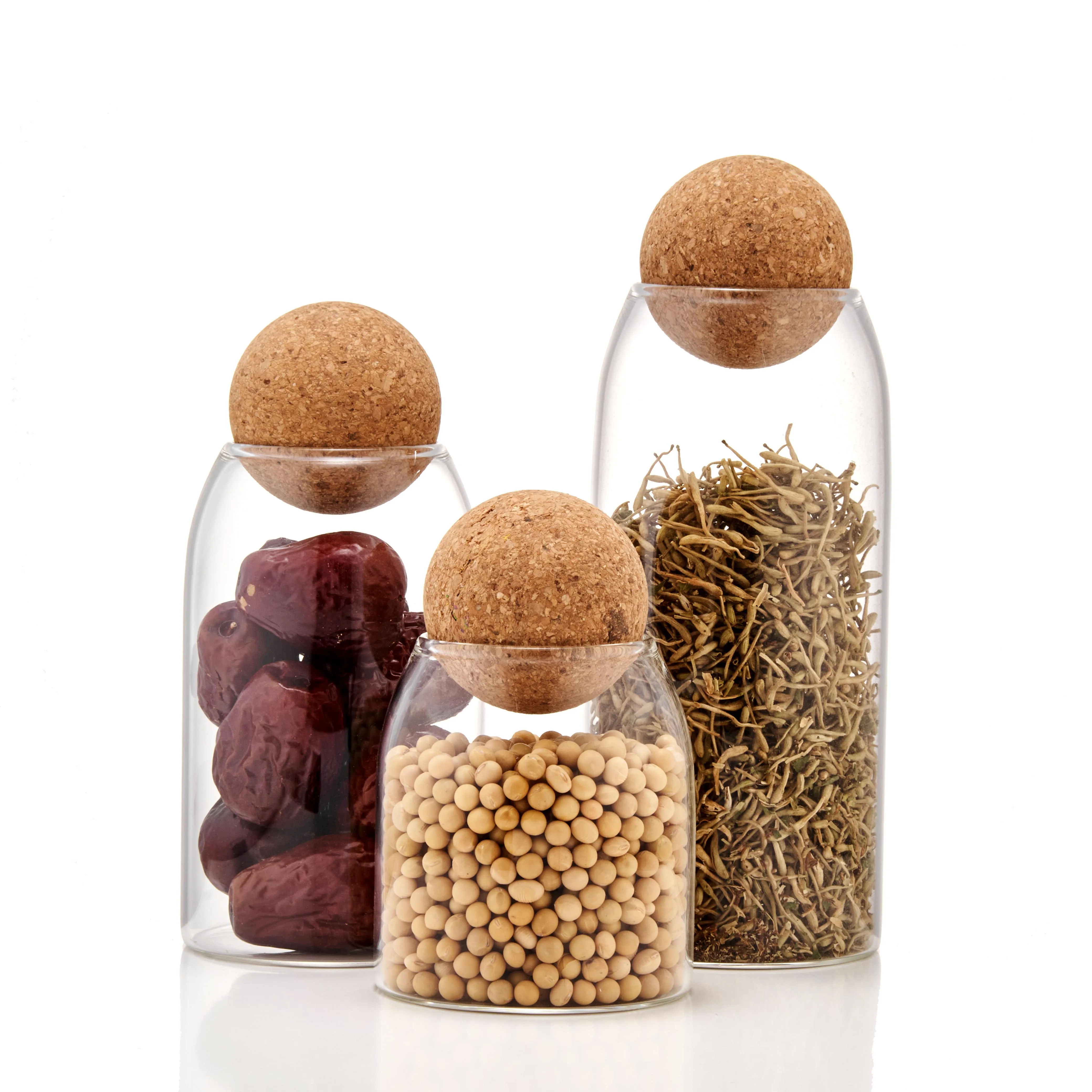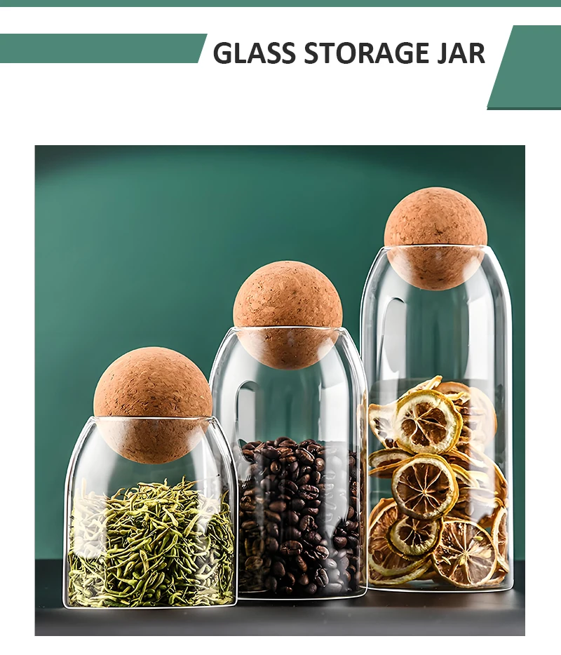 Wholesale custom logo size glass sealed food cereal storage containers cans glass jar with wooden ball lid