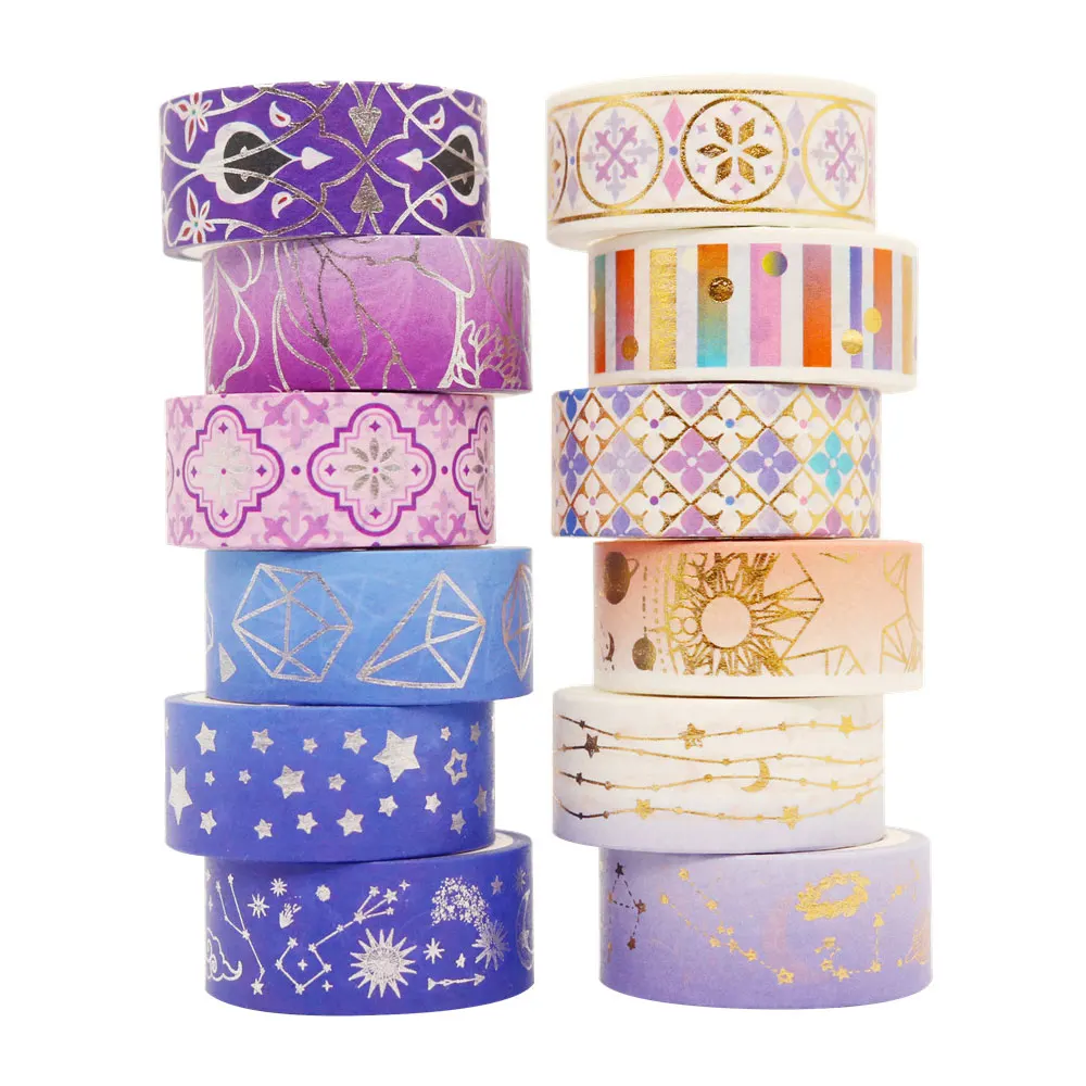 Products Name | GF New Design 12 Rolls Starry Night Gold Foil Print 15mm x 3m Cosmic Geometric Scrapbook DIY Decoration Masking Washi Tape | |||||