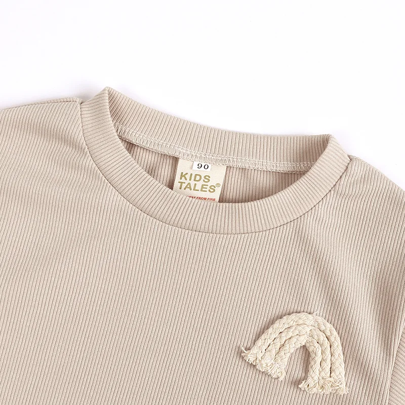 Autumn and winter round neck rainbow embroidered long sleeve trousers baby pit stripe suit children two-piece suit