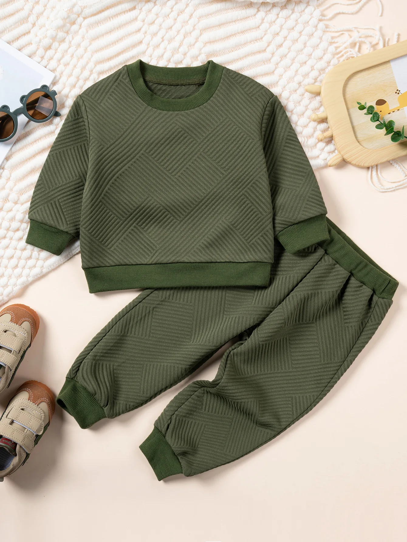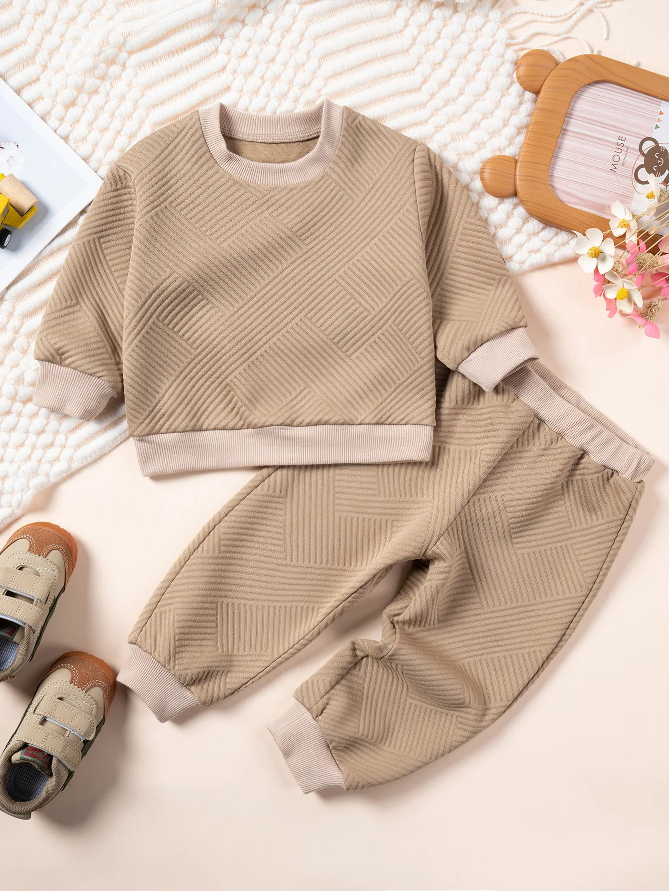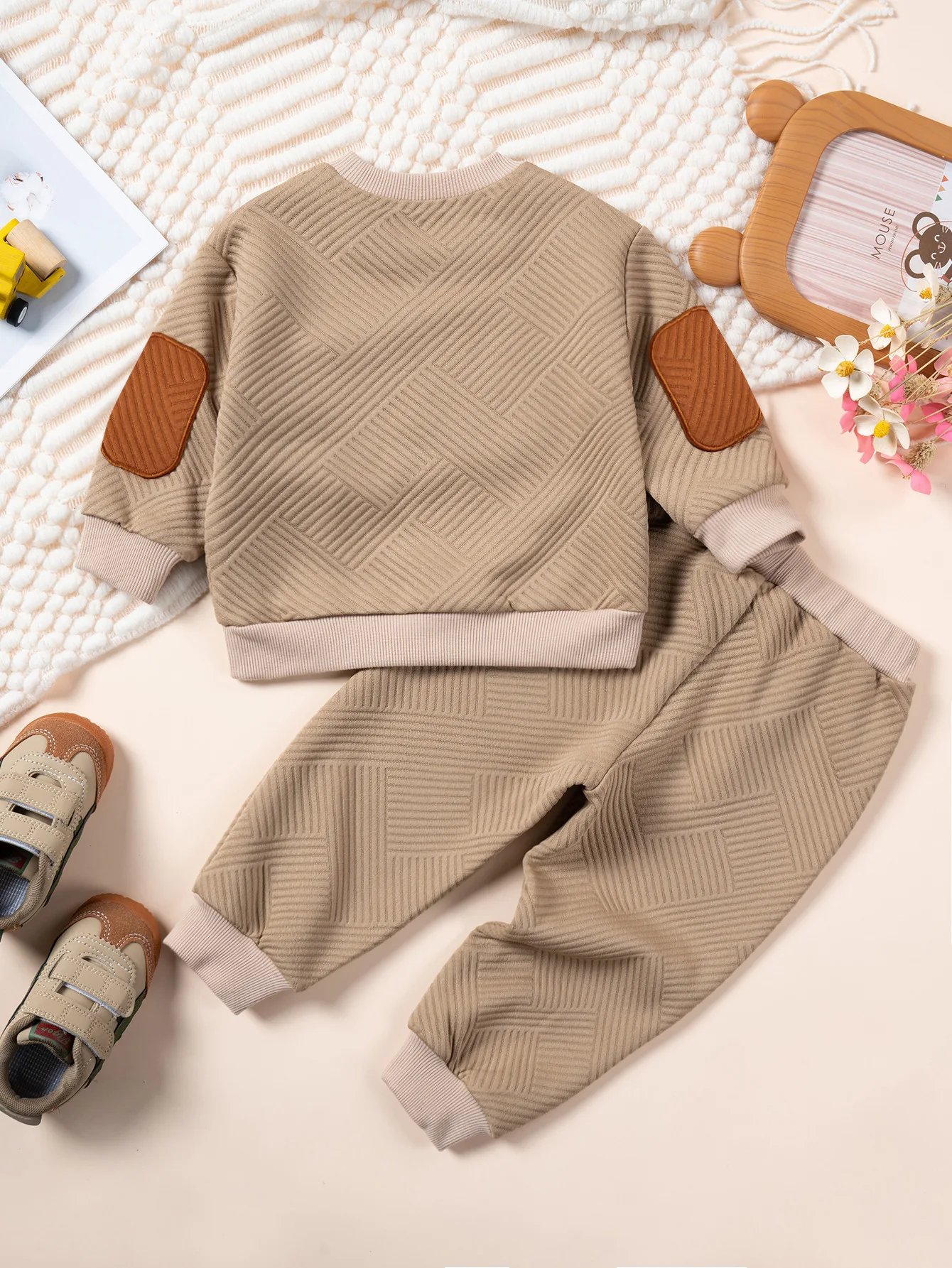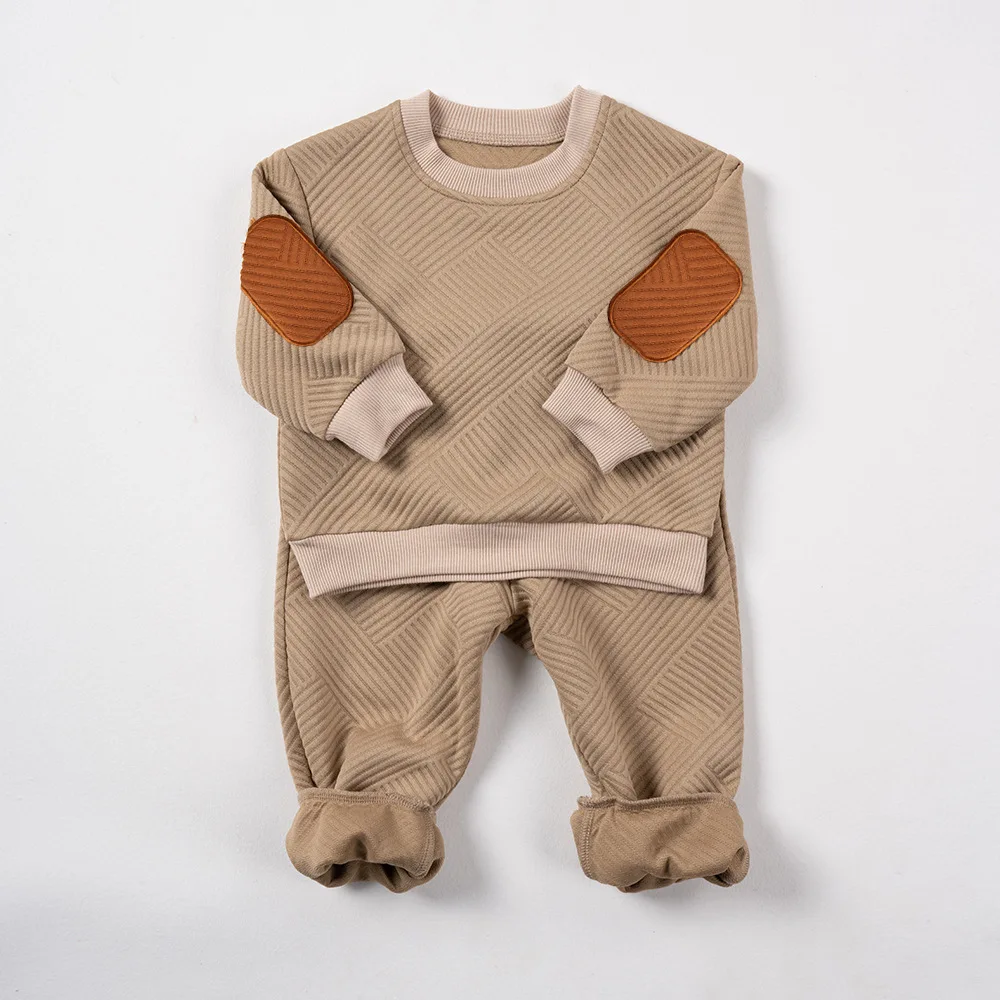 Toddler Autumn Set Long sleeved Elbow Contrast Sports Shirt+Solid Color Pants 2-piece Set for Daily Wear