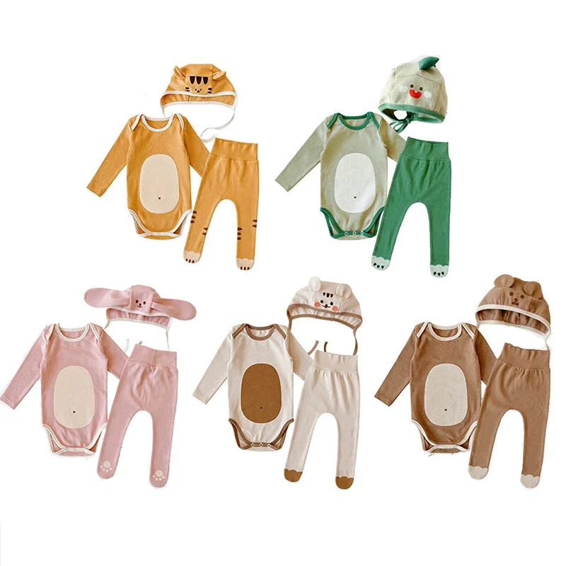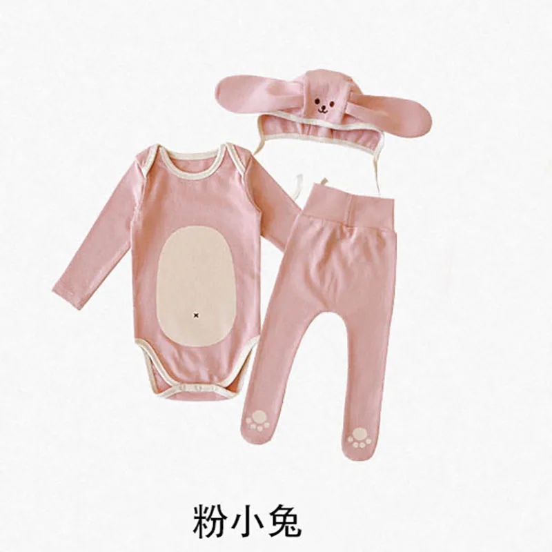 Baby Romper Sets Cotton Pajamas Sets Romper Pants Animal Hat 3pcs Set Infant Boy Girl Pyjamas Outfits High Waist Bear Rabbit