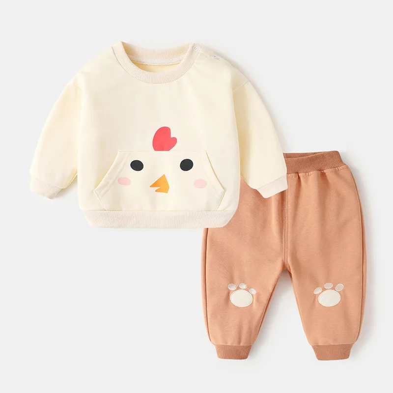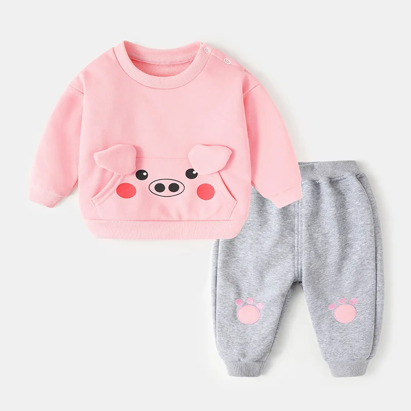 Autumn Infant Baby Girl 2PCS Clothes Set Cotton 3D Cartoon Pockets Kid Girl Sweatshirt Patched Jogger Pant 1-3Y Girl Outfits