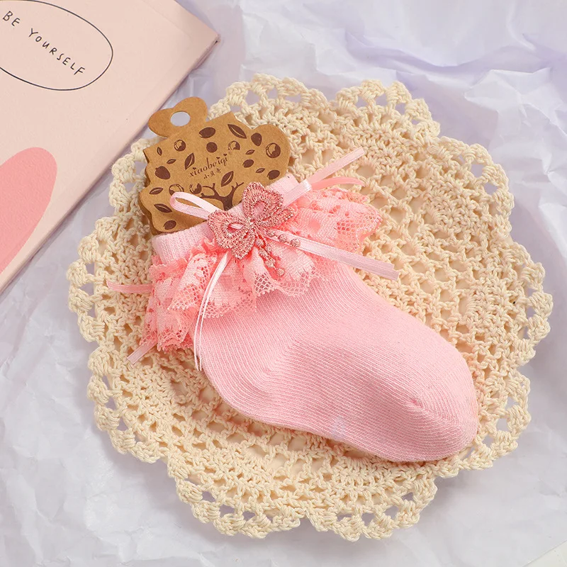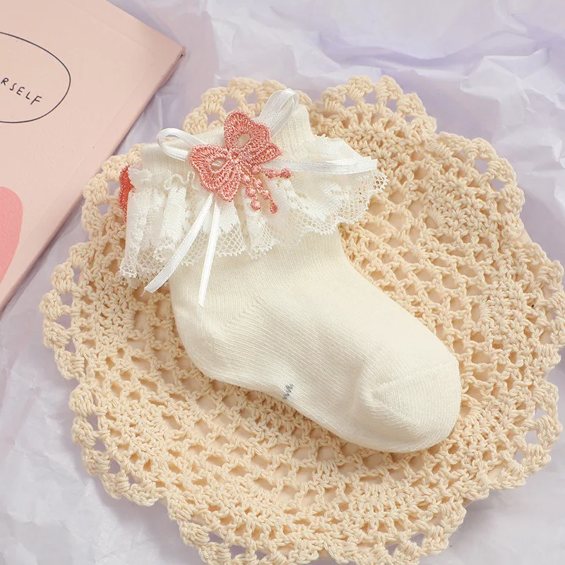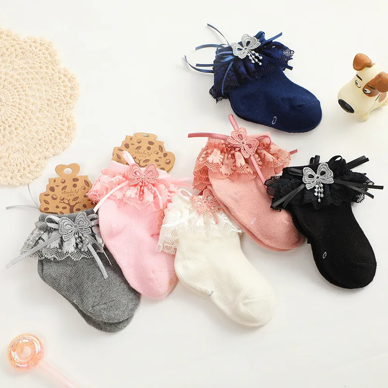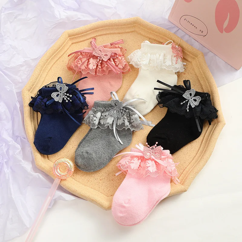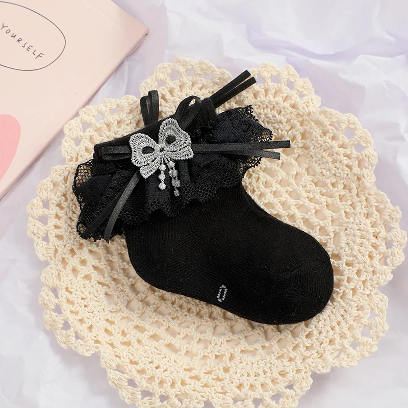 New autumn baby socks lace bowknot girls middle tube thin student socks breathable children's socks