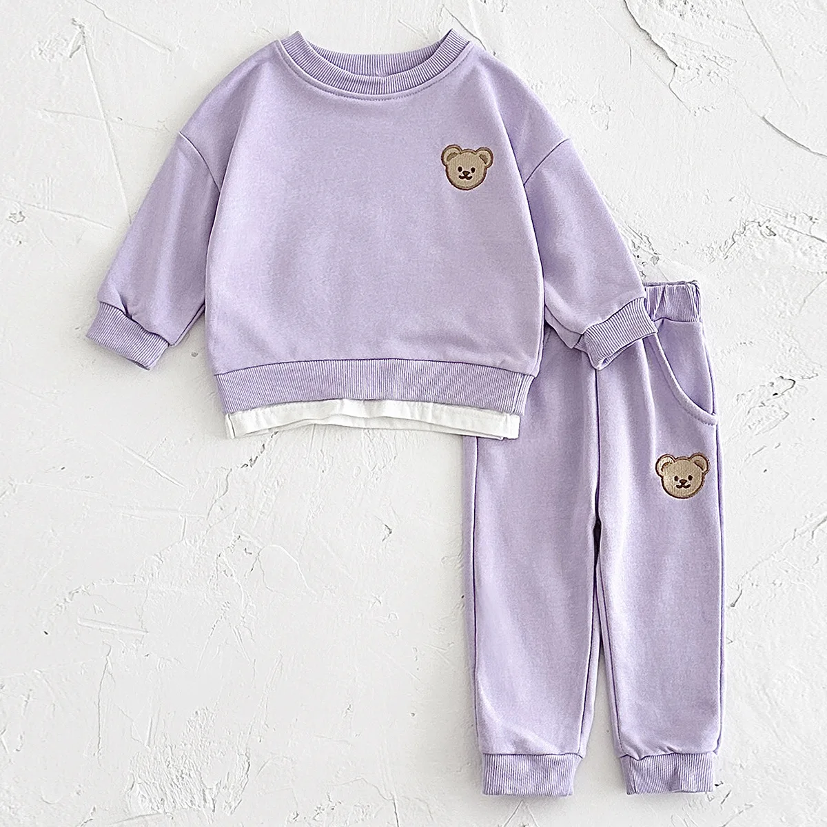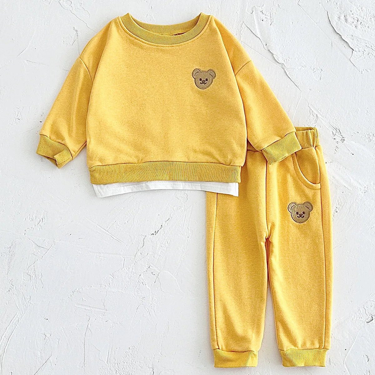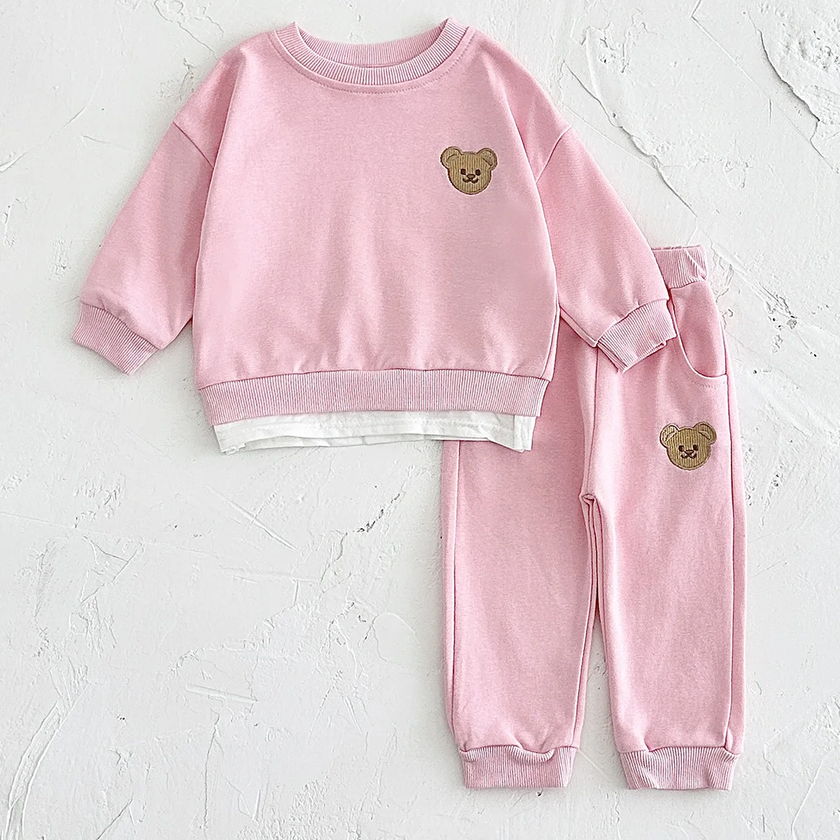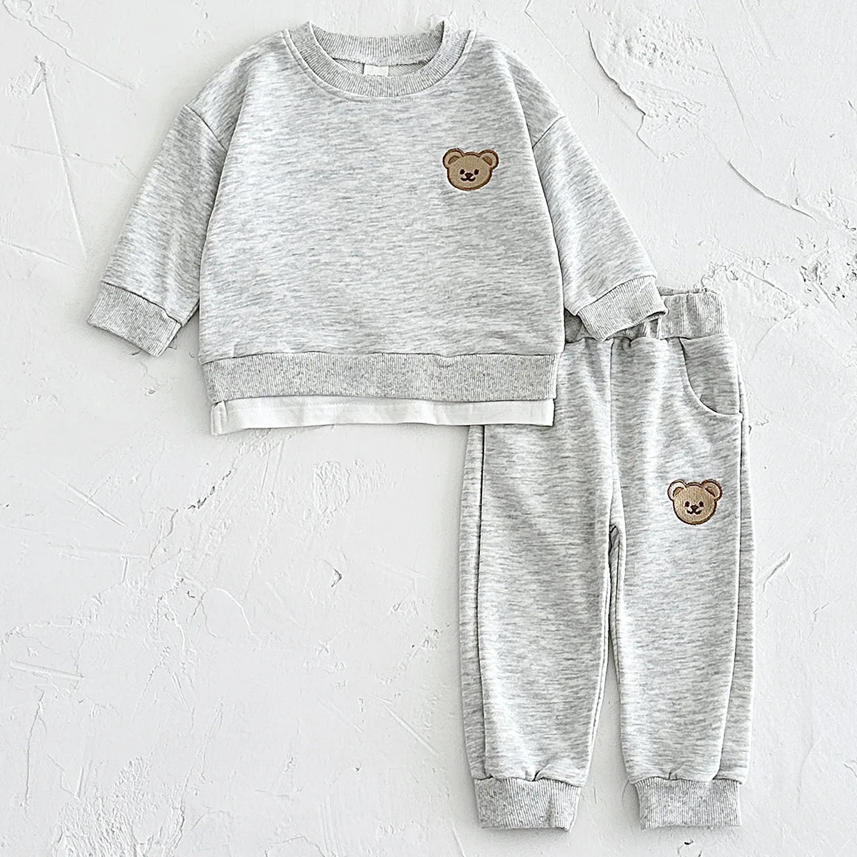Spring and Autumn Newborn Bear Embroidery Long Sleeve Two-piece Suit Children's Baby Sweater