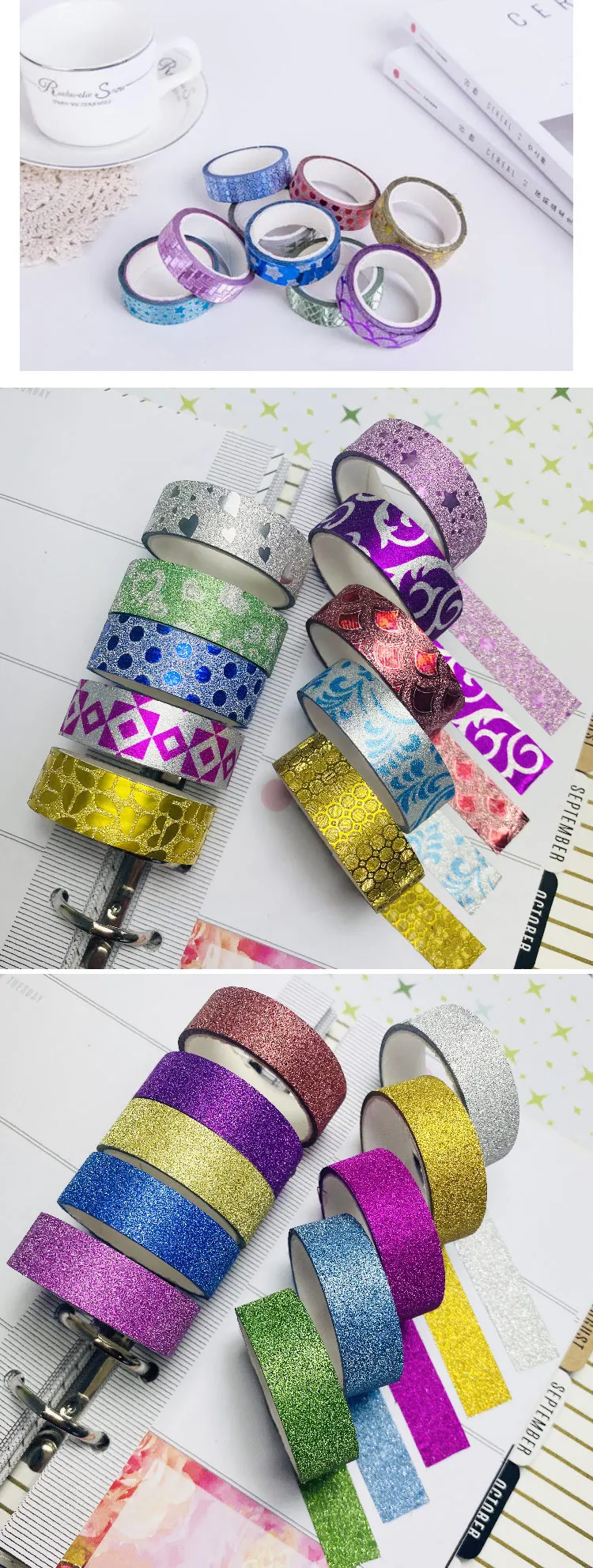 Products Name | GF New Arrival 10 rolls Glitter Washi Tape Buy Manufacter DIY Decor Scrapbooking Adhesive Masking Decorative Washi Tape | |||||