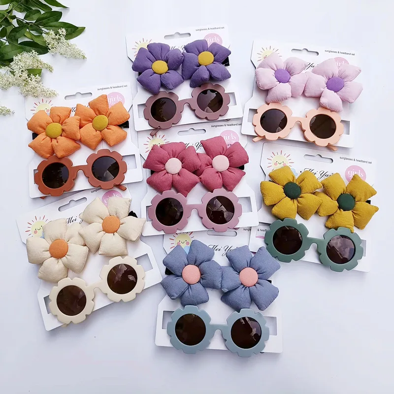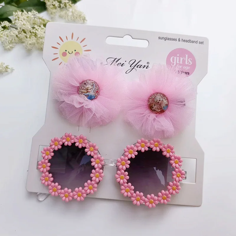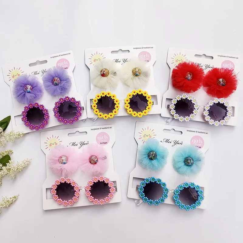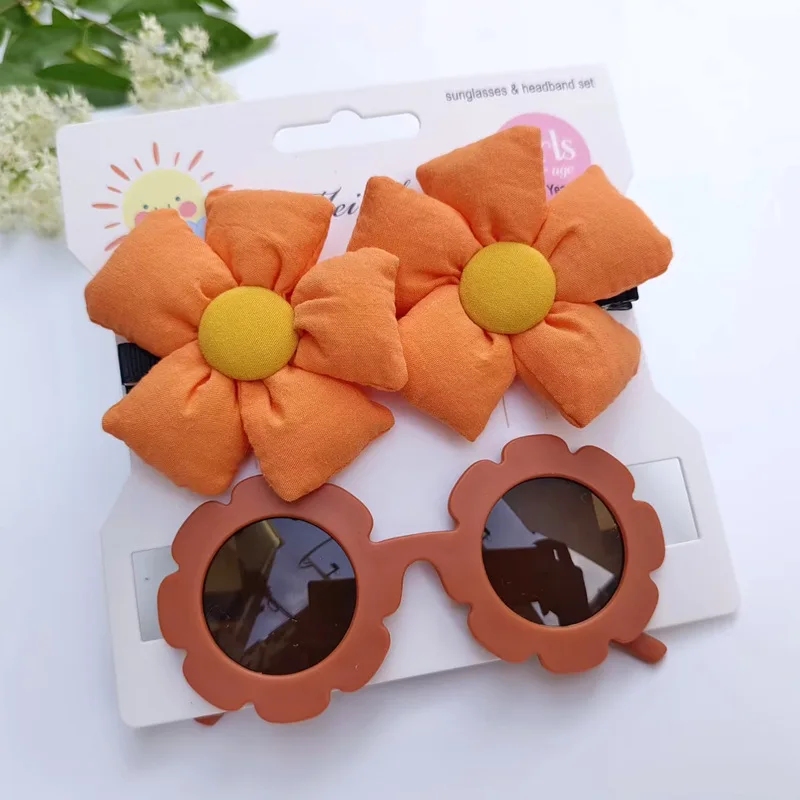 Children's hairpin glasses set European and American style girls hair accessories hairpin sunflower sunglasses cute