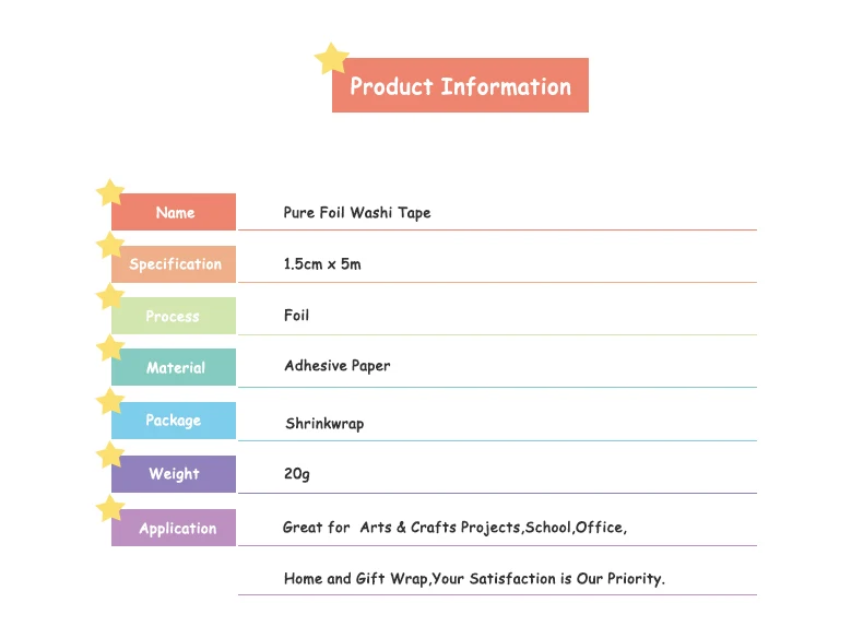 Type | Pure Foil Washi Tape | Application | School&Home&Office | |||