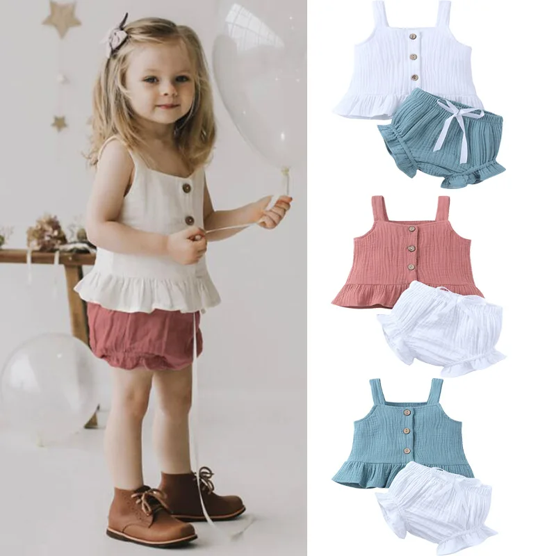 Summer linen cotton baby girl baby clothes suspender top shorts two-piece set