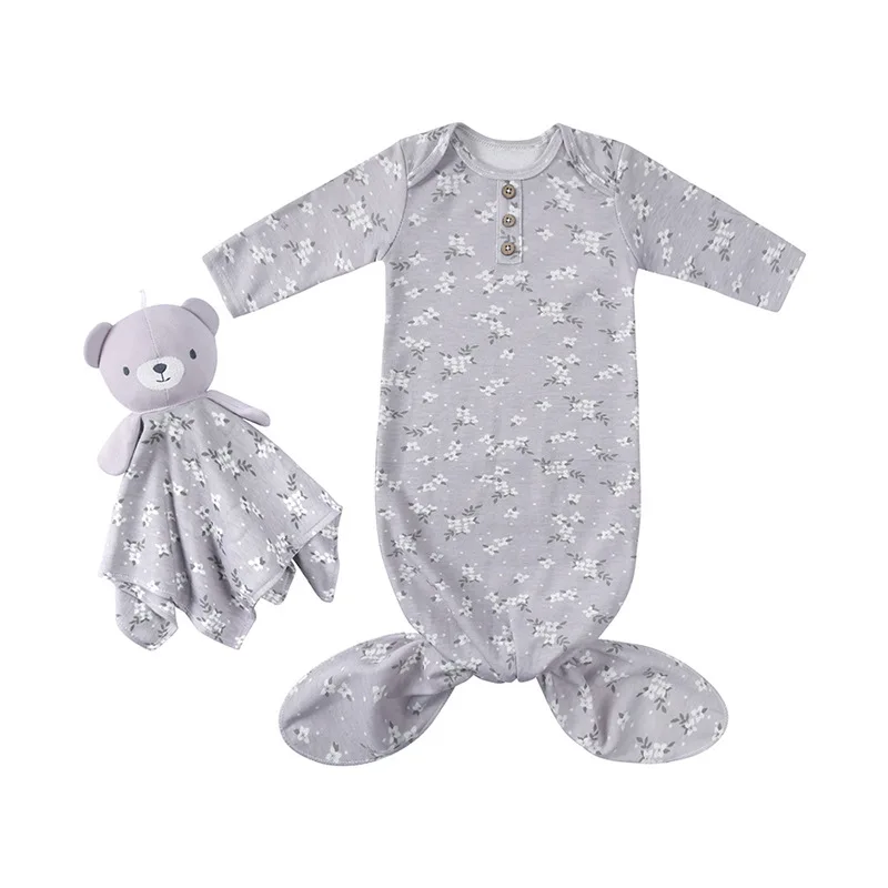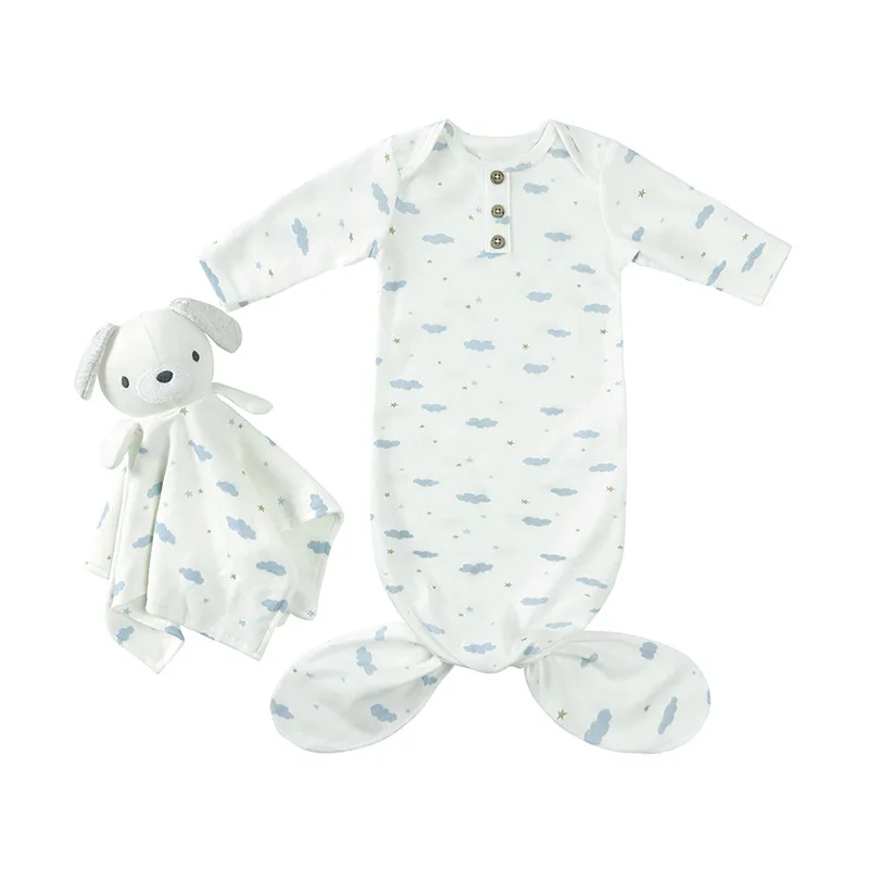 Baby sleeping bag spring and autumn baby supplies anti-kick quilt knot pajamas newborn comfort towel hand puppet set