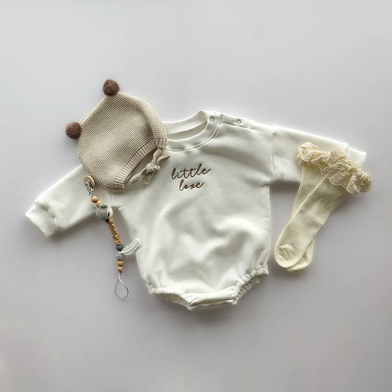 New style plus velvet romper crawling clothes embroidered neutral infant autumn and winter crawling clothes