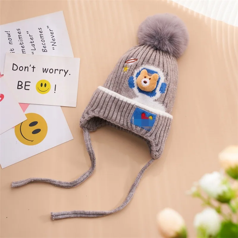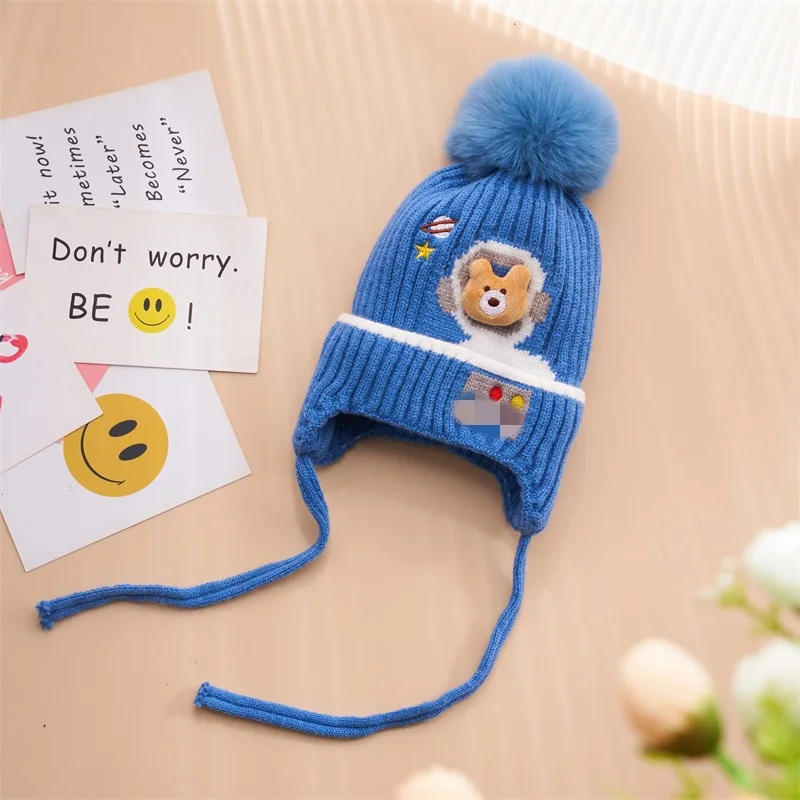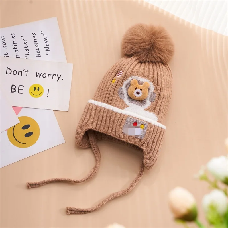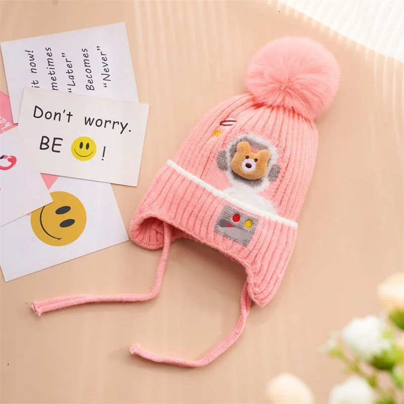 Autumn and winter children's hats for girls bear baby warm and cute girls wool hats thickened baby winter knitted hats