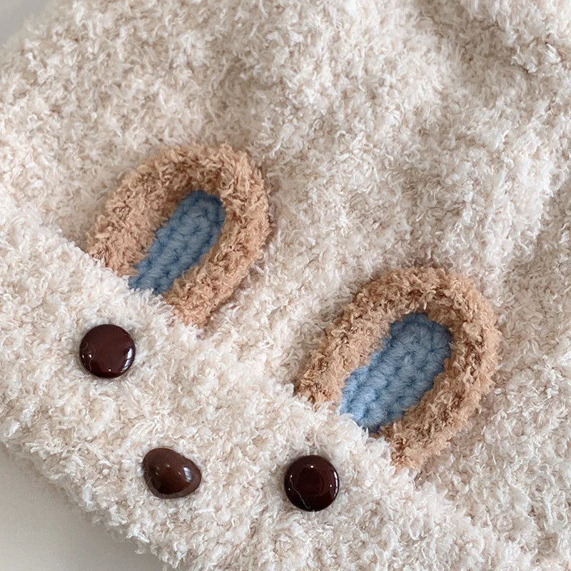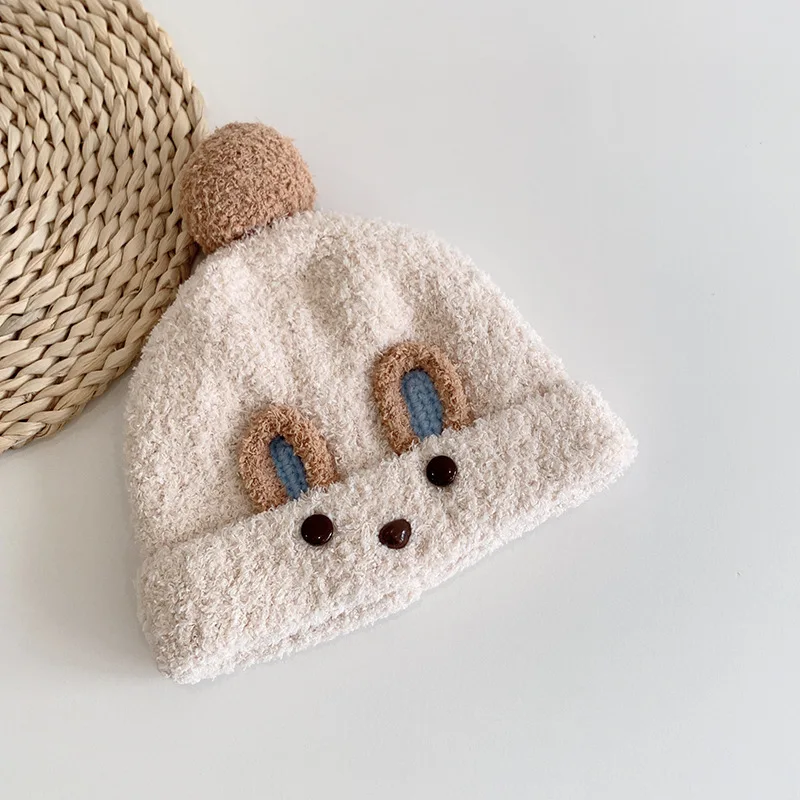 Bear children's wool hat autumn and winter baby knitted baby windproof hat boys and girls warm ear protection hat
