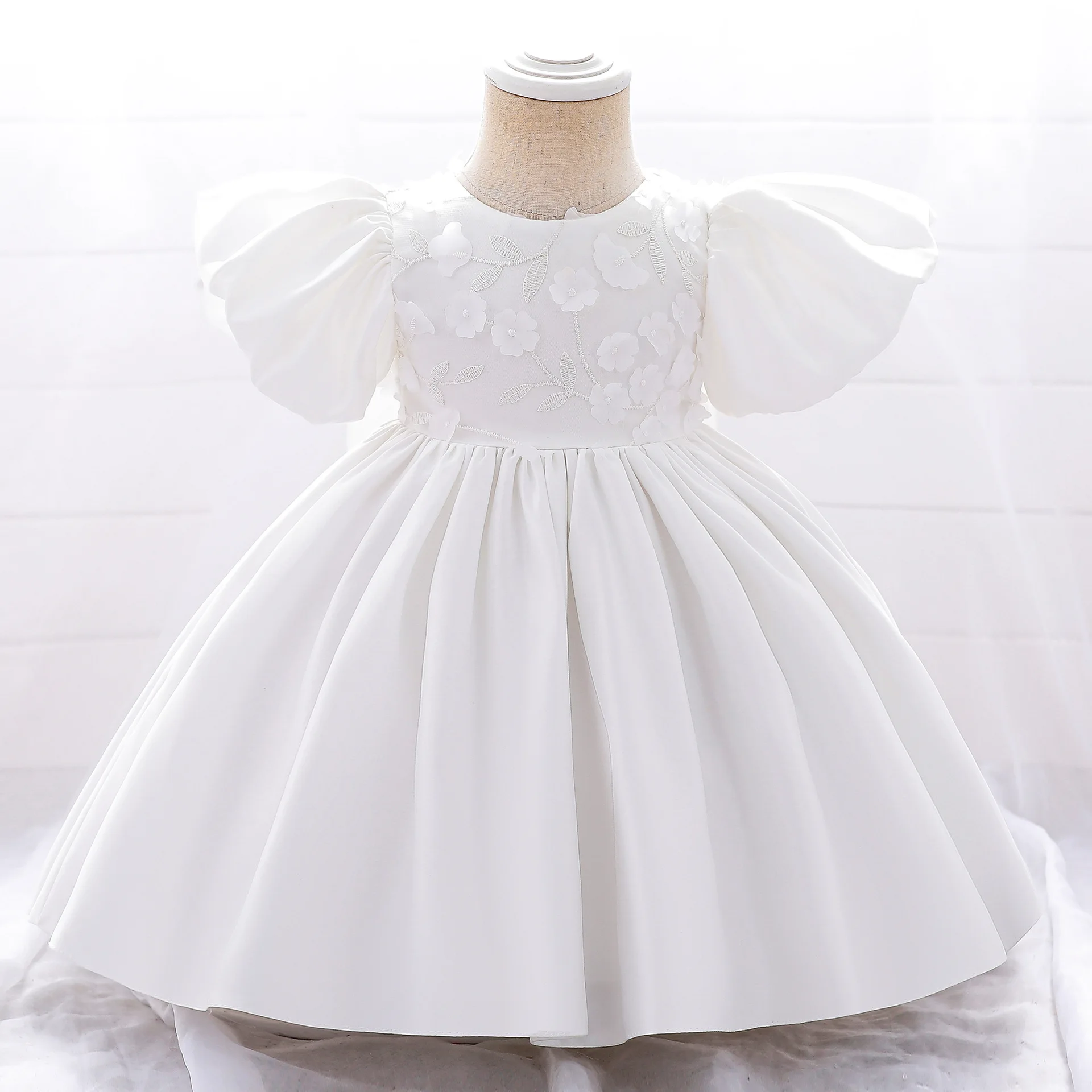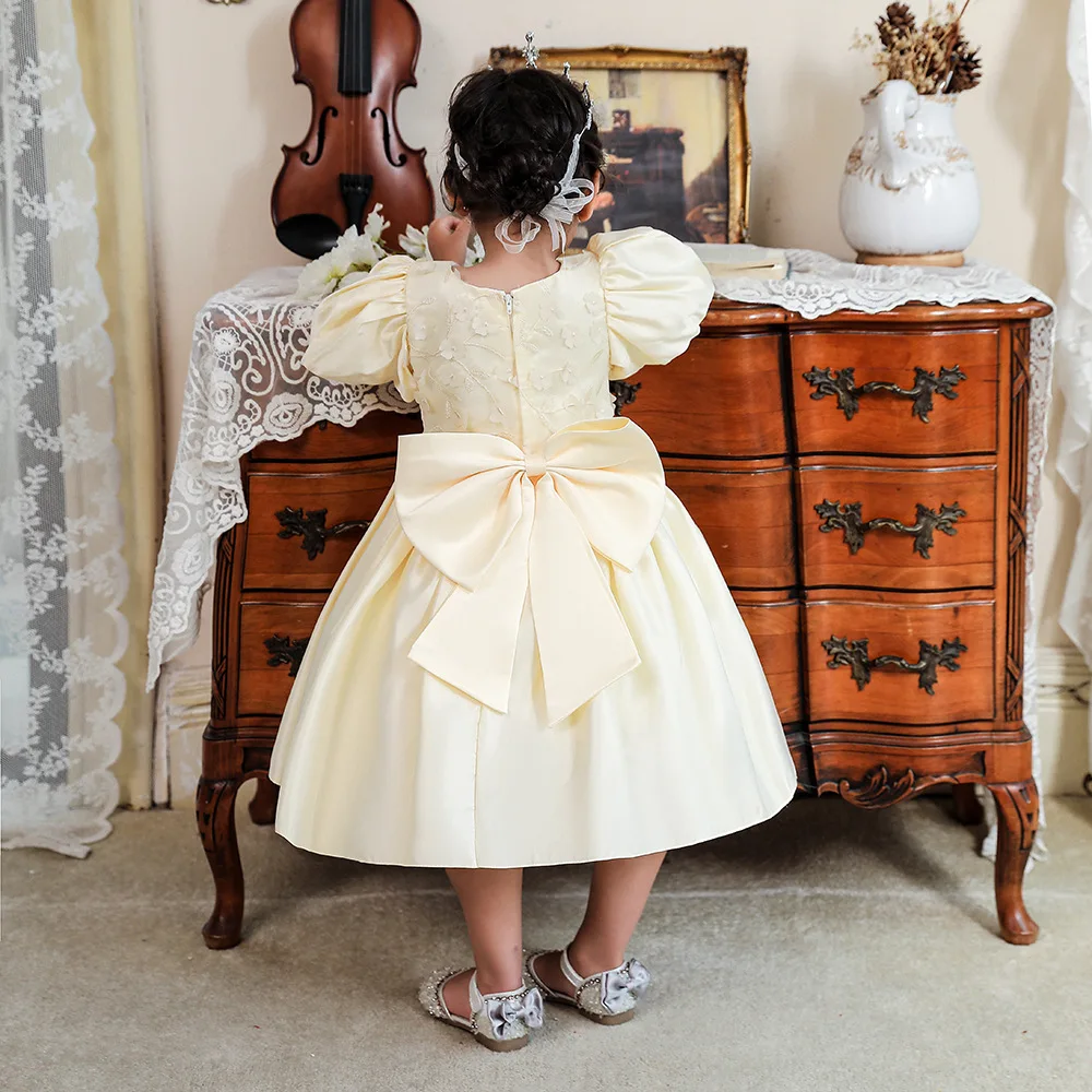 New style girls birthday dress puff sleeve three-dimensional flower dress princess dress
