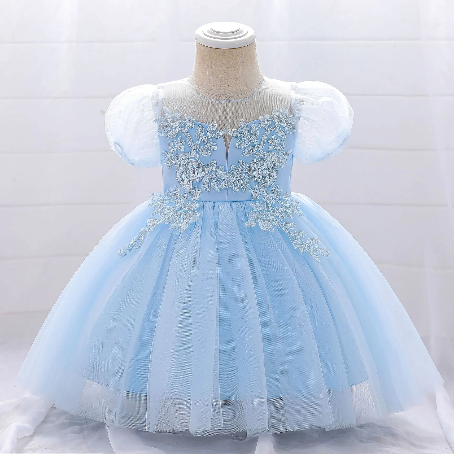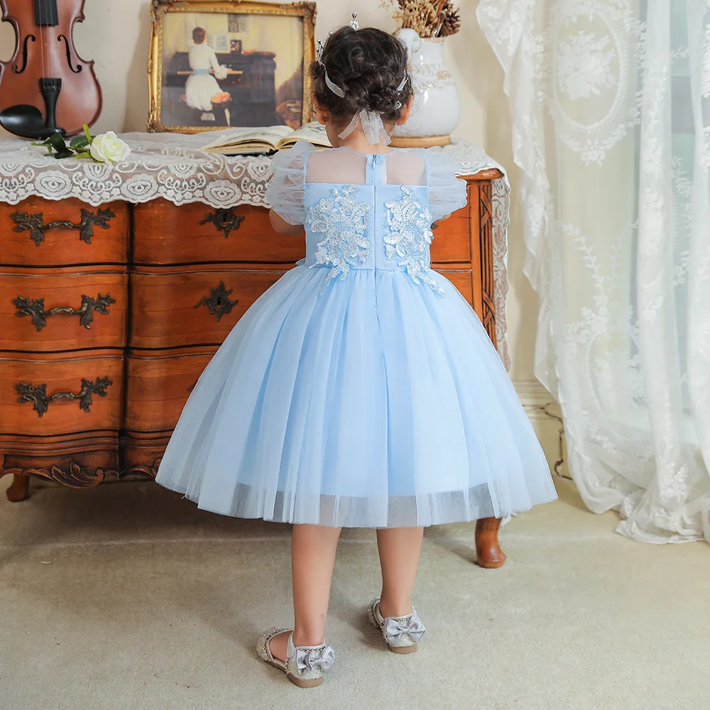 New European and American children's piano performance clothes for girls applique princess dress for girls birthday dress