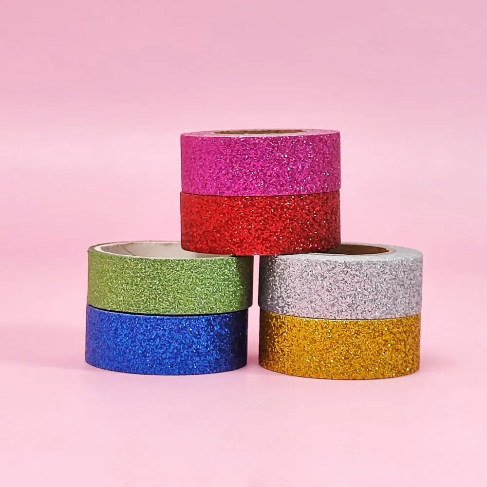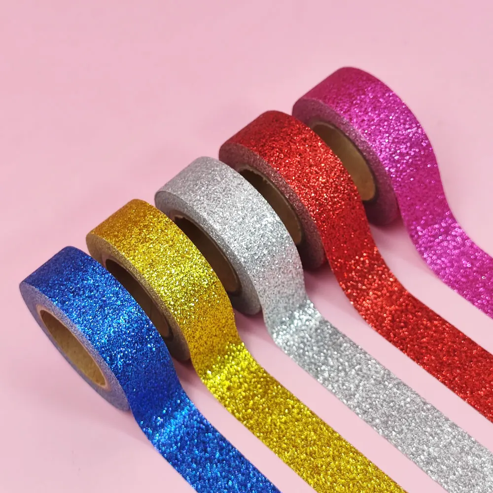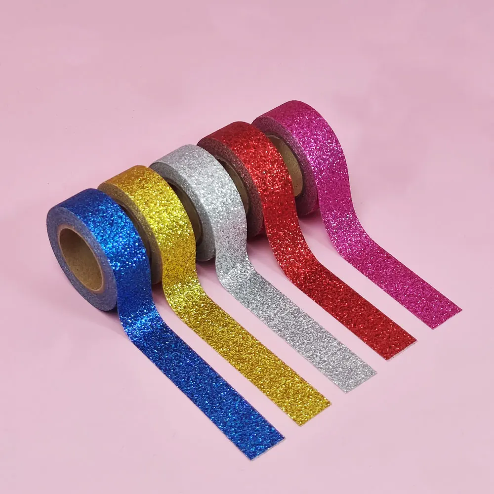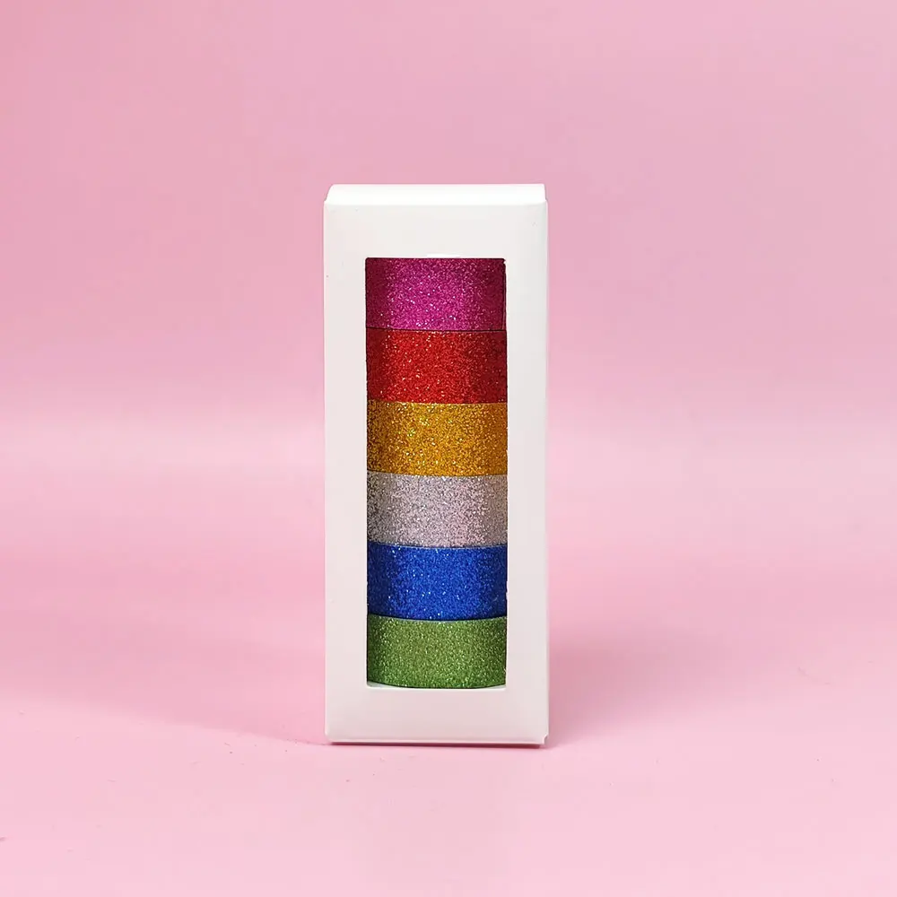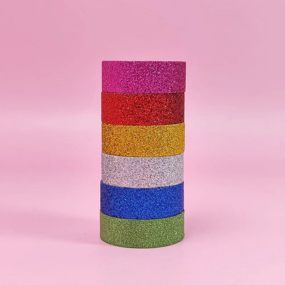 Products Name | GF High Quality 6 Rolls 15mm x 3m Glitter Colored Decorative Masking Tape Sparkle Self Adhesive Washi Tape for DIY Crafts | |||||