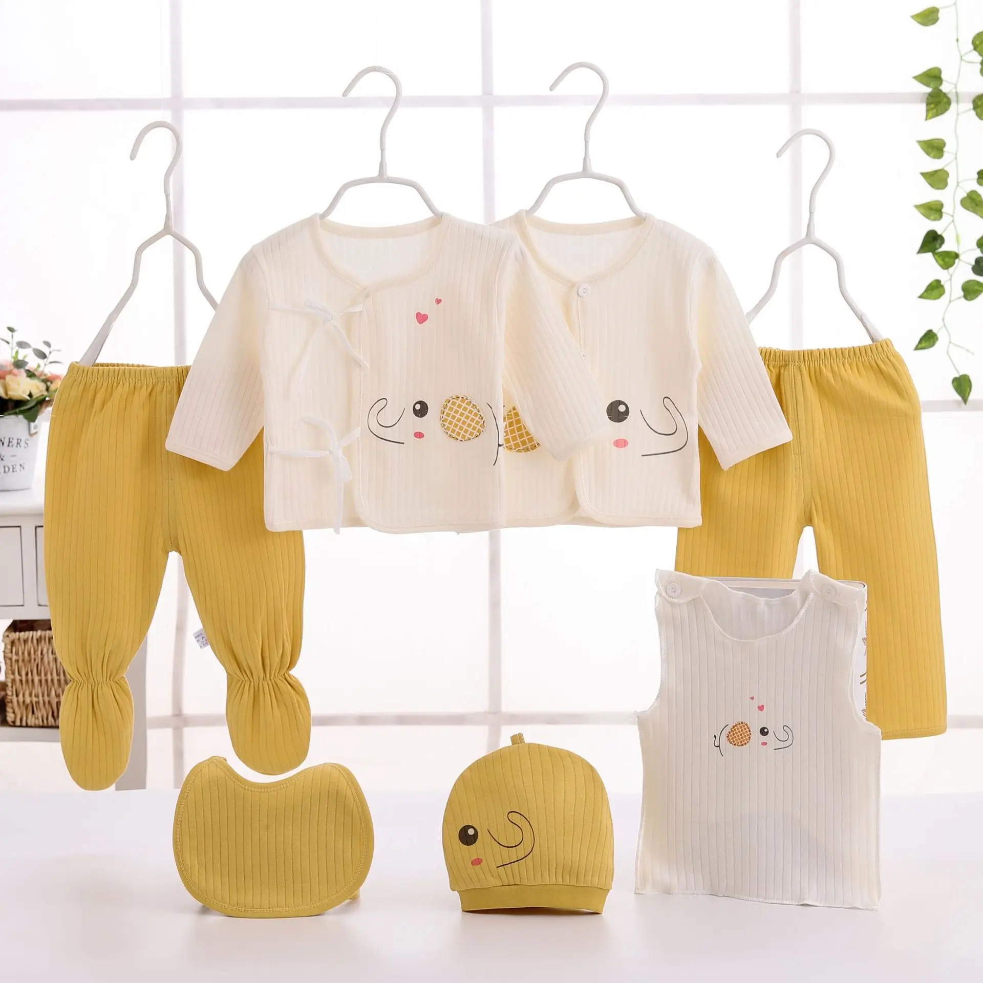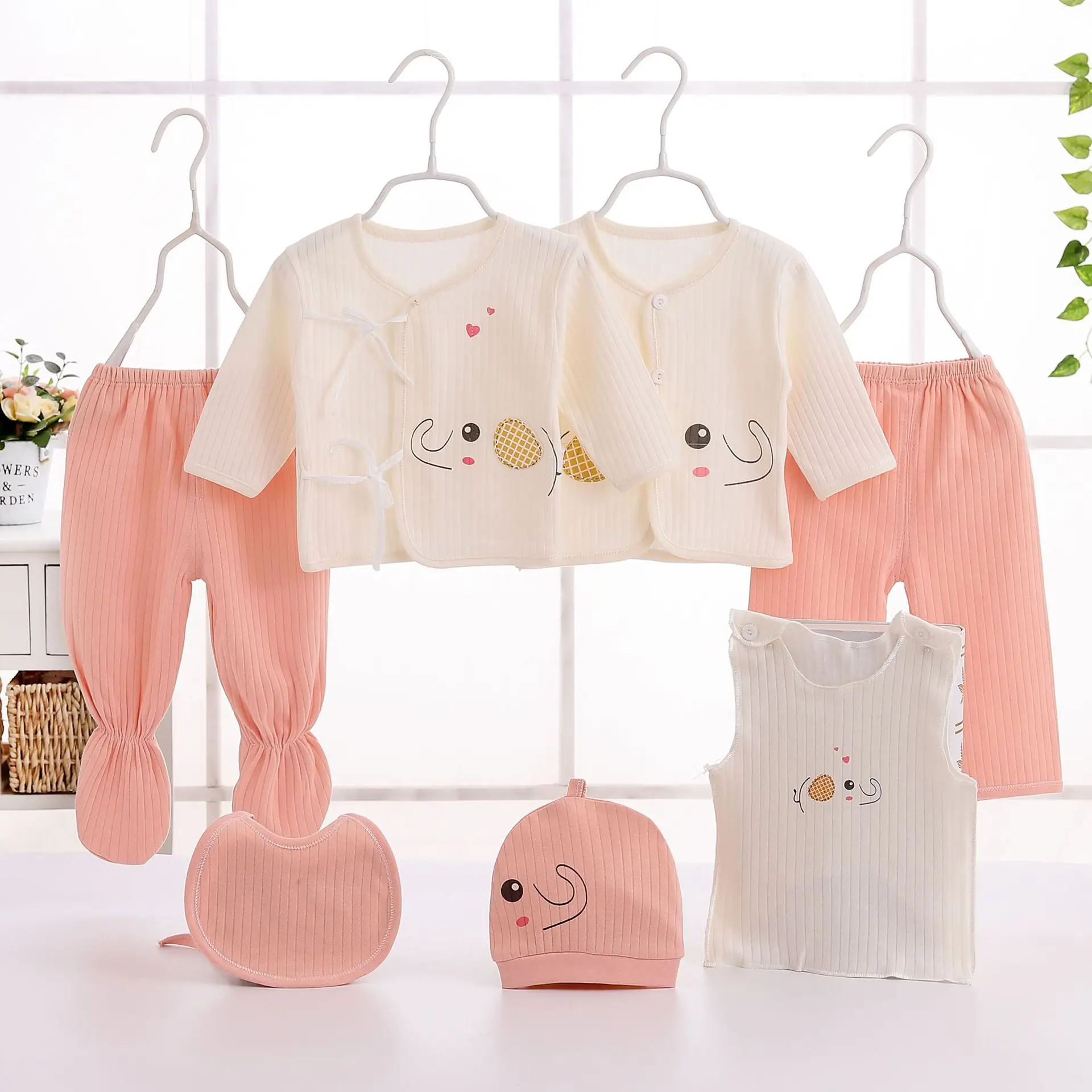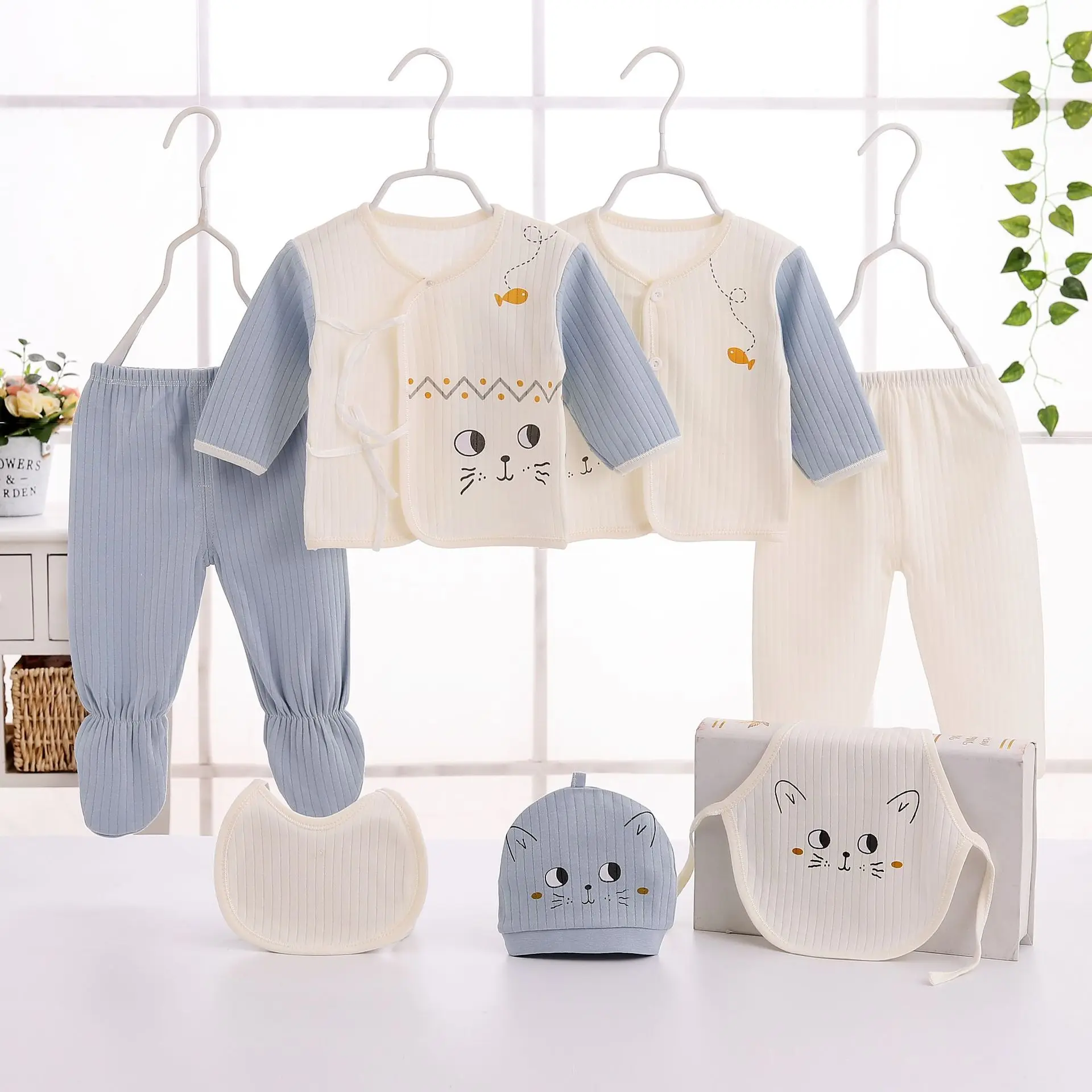 New cotton wool seven-piece suit for infants and young children cartoon pattern cotton wool children's suit for boys and girls
