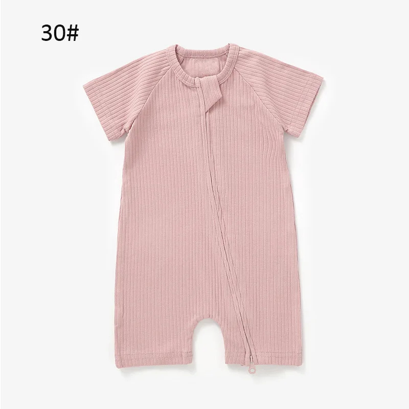 Customized Knitted Romper Short-sleeved Romper Summer Plain Unisex Zipper Baby Short Rompers