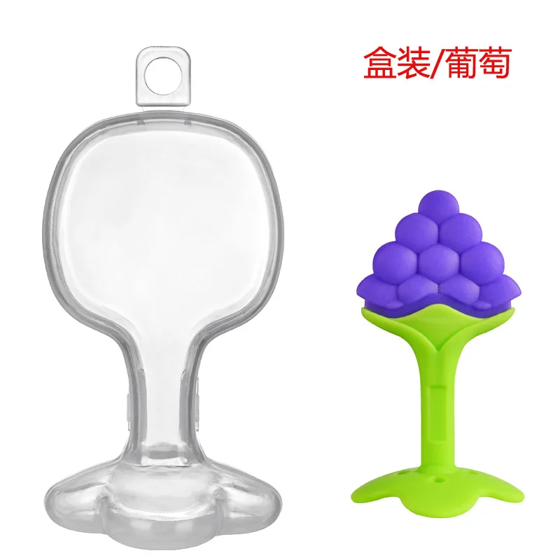 Wholesale silicone baby teether fruit shape teether newborn two-color three-dimensional teether molar stick with box