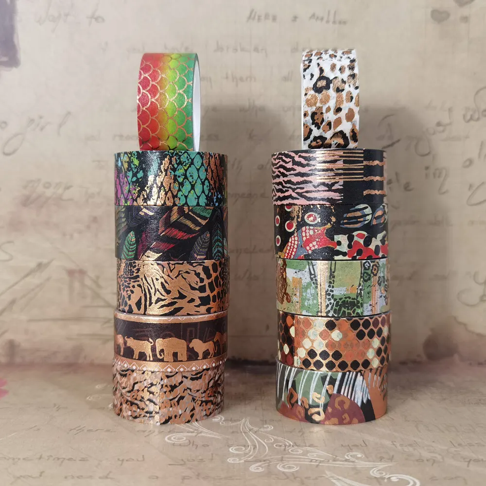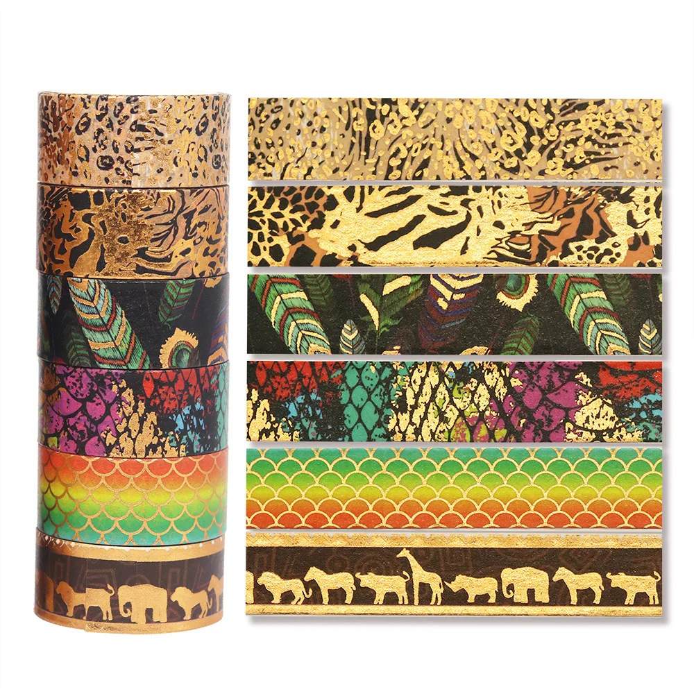 Products Name | GF Popular Design 12 Rolls 15mm x 3m Wild Animals Washi Tape Set Gold Foil DIY Scrapbook Journals Decorative Washi Tape | |||||