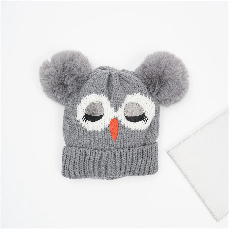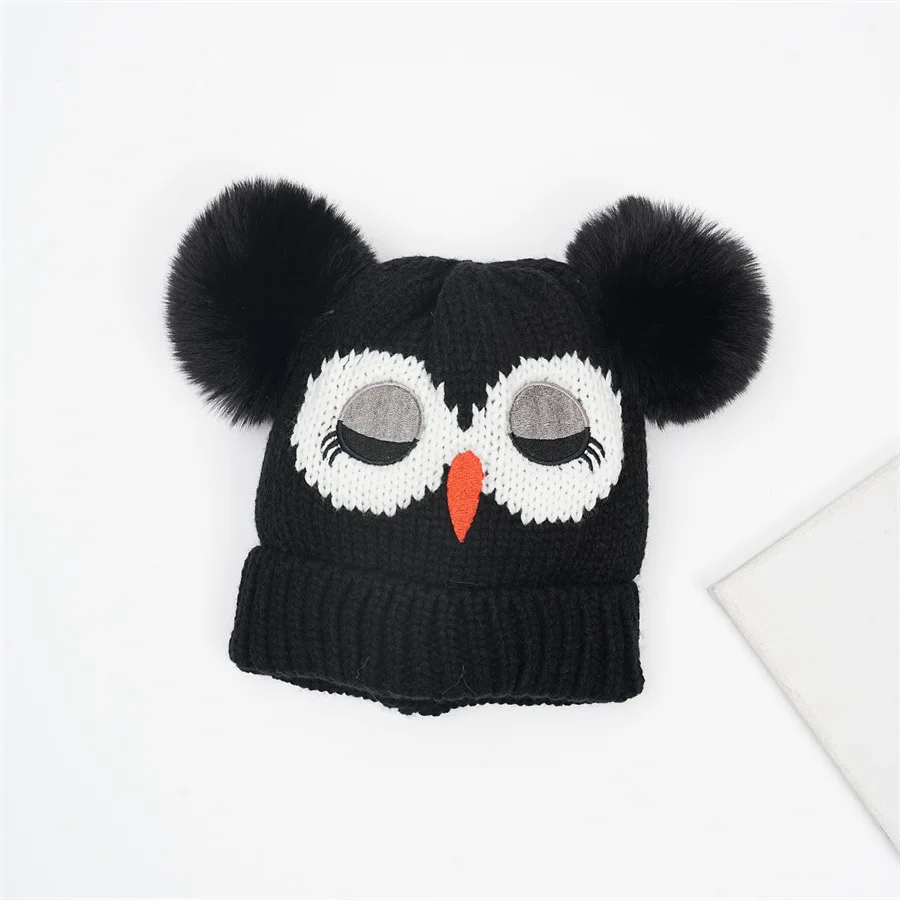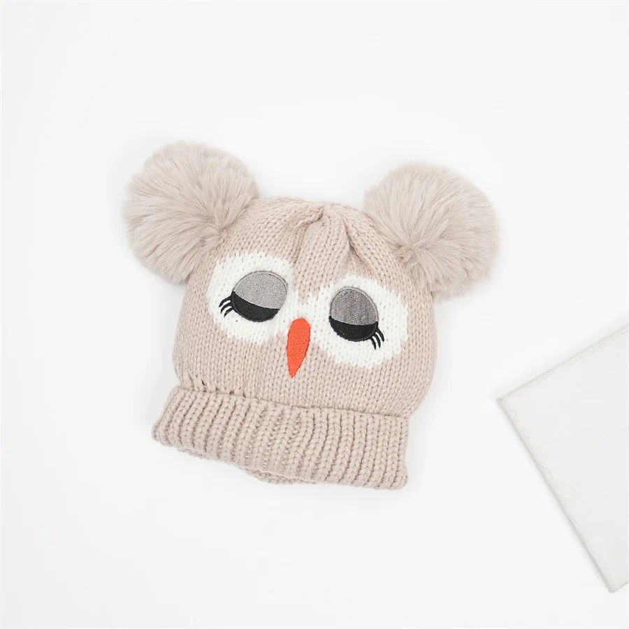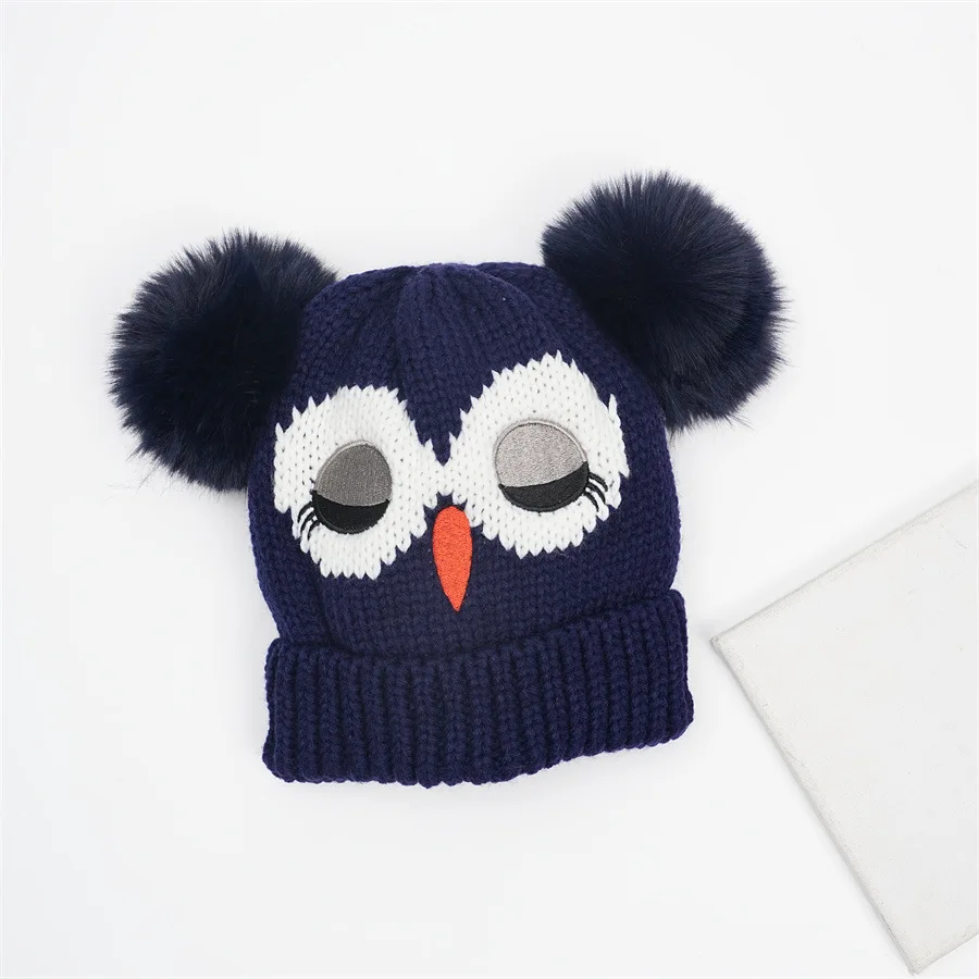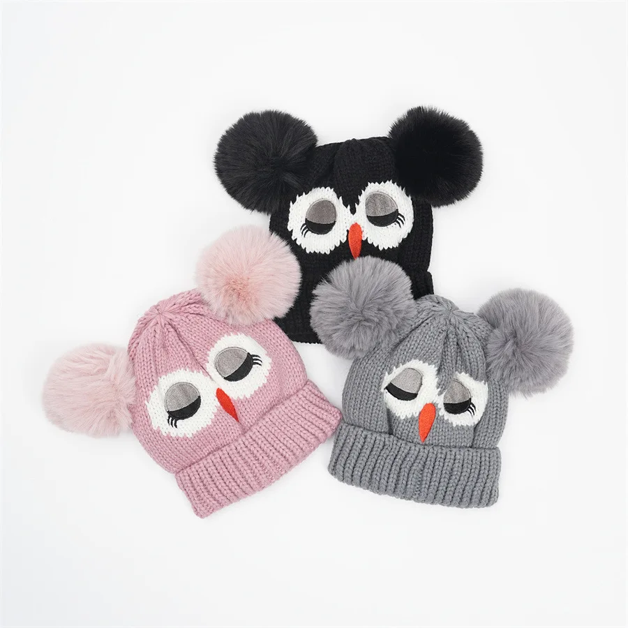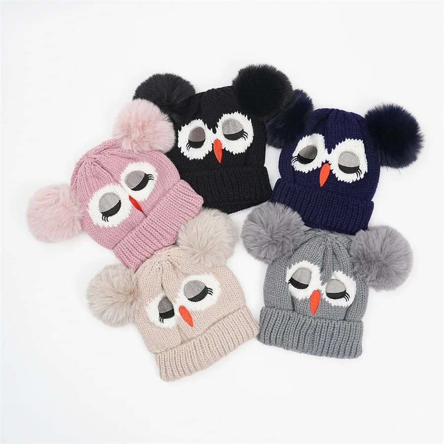 Children's Double Ball Beanie New Style Beanie Cartoon Owl Knitted Warm Hat