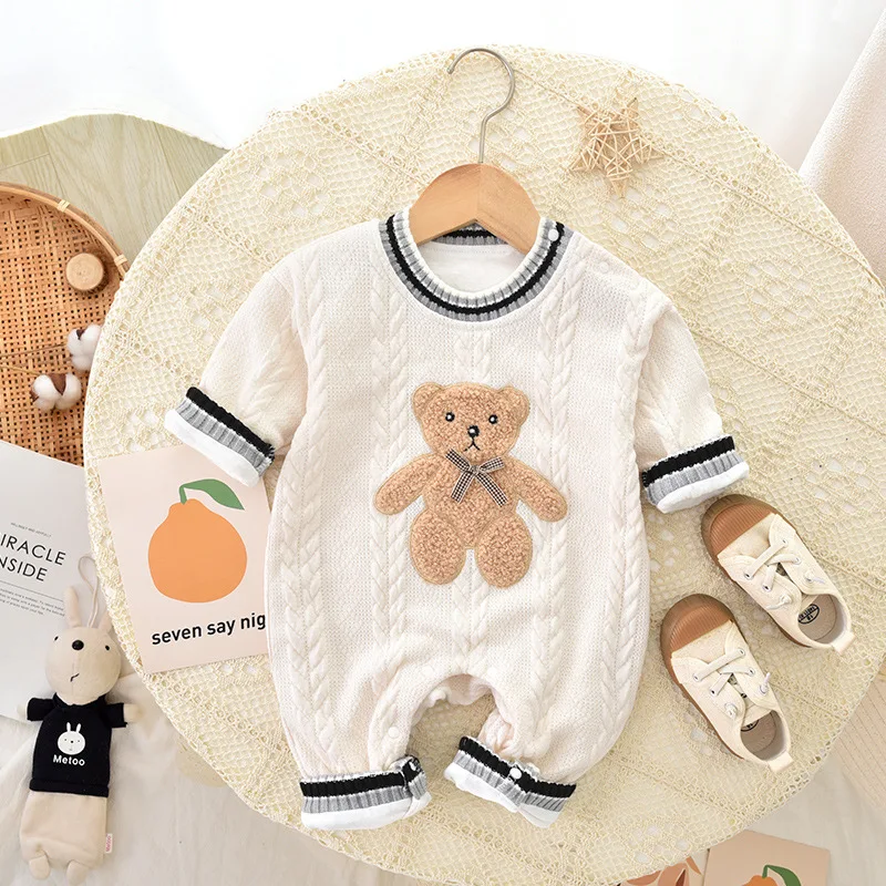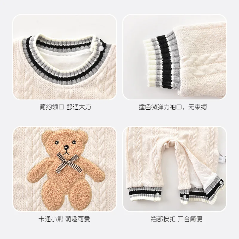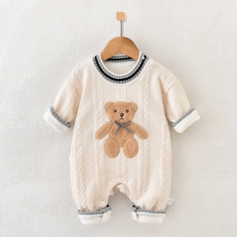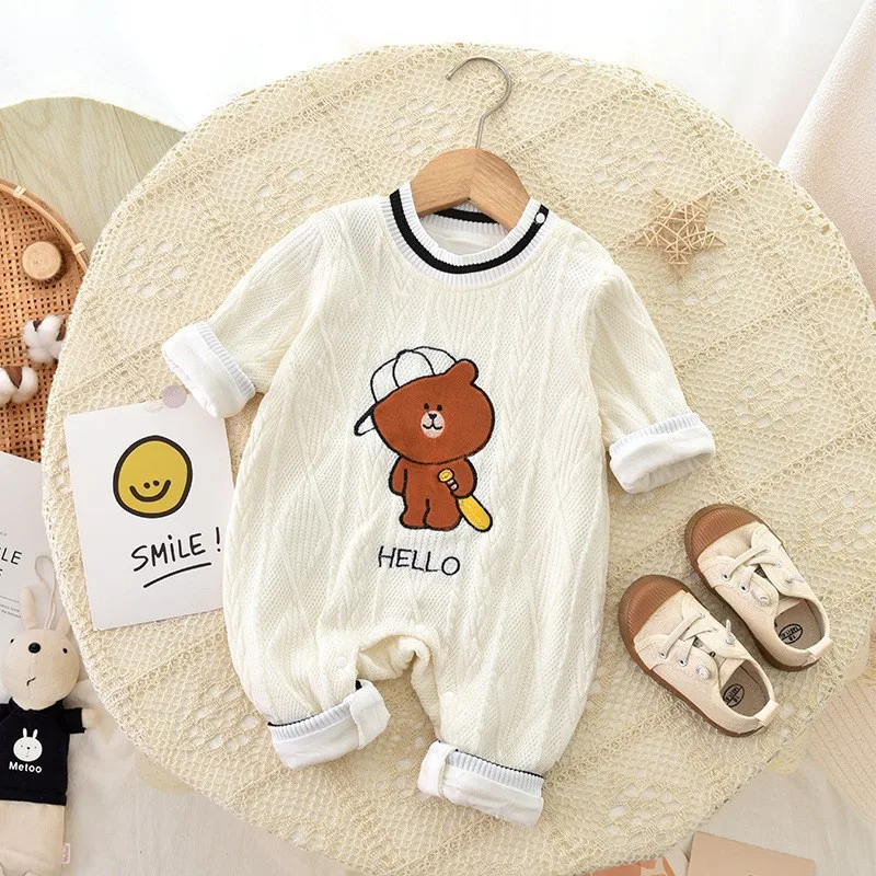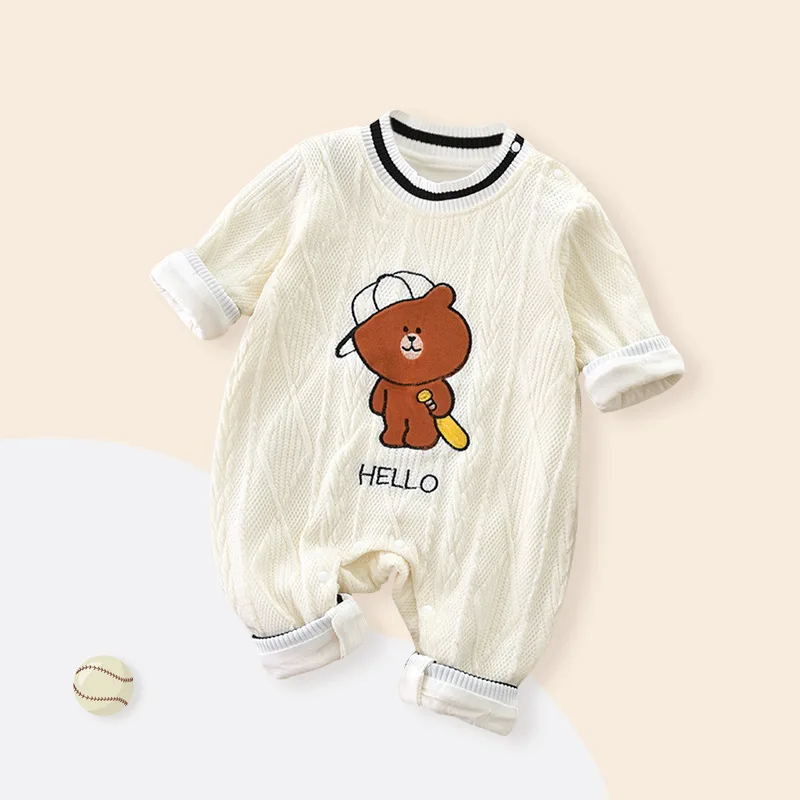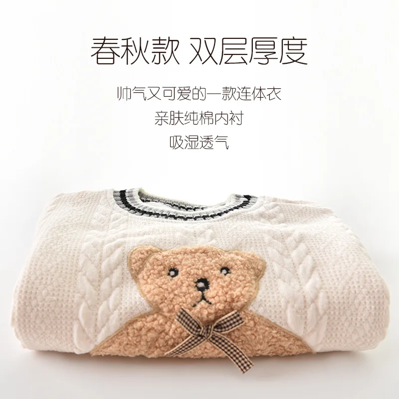 Baby double-layer jumpsuit long-sleeved thick spring and autumn climbing clothes romper baby pajamas newborn climbing clothes