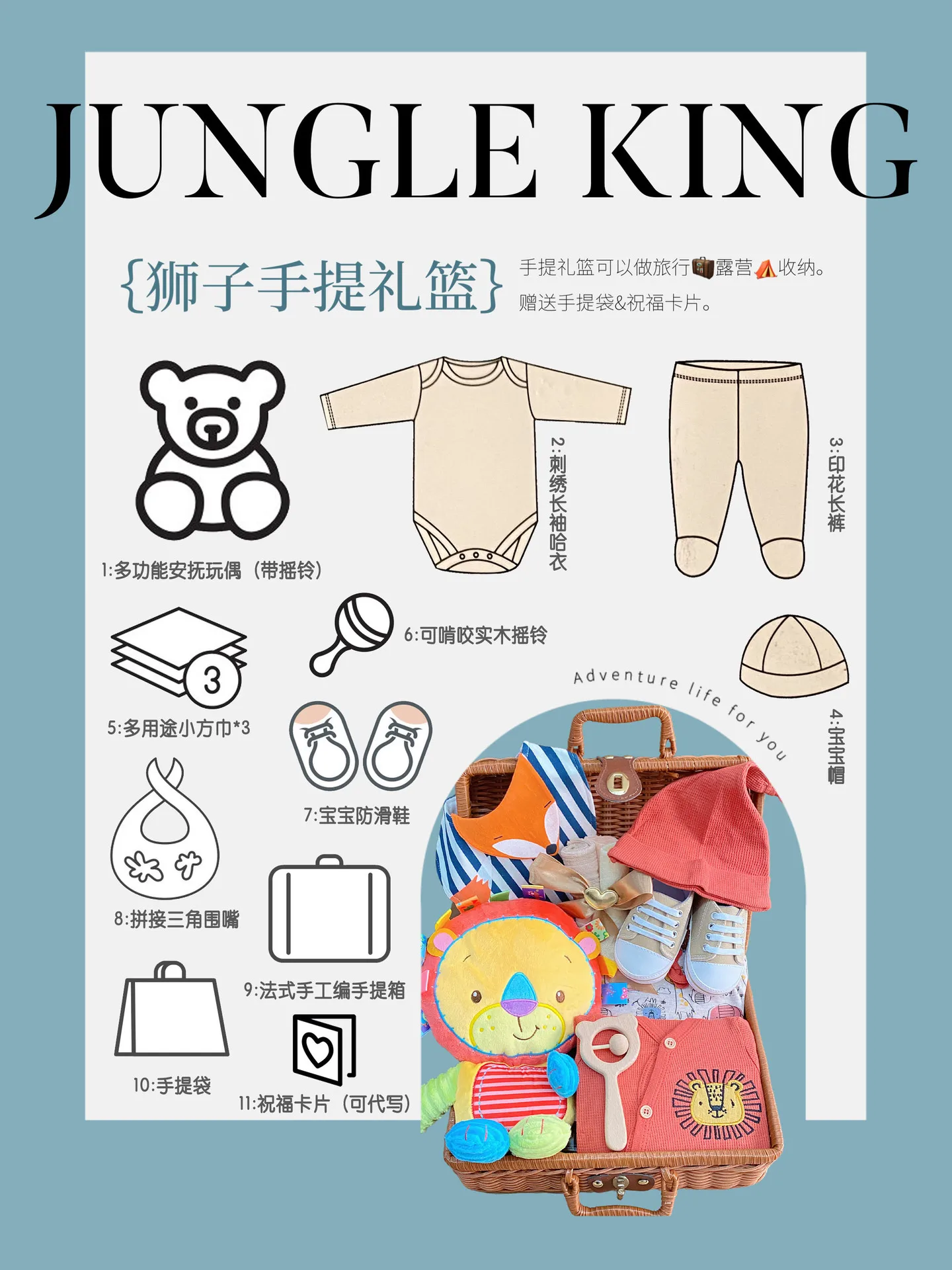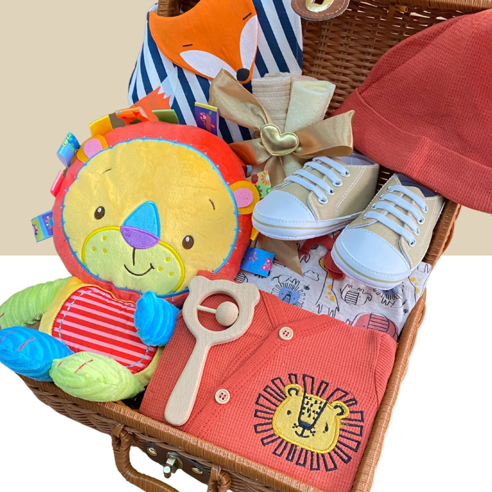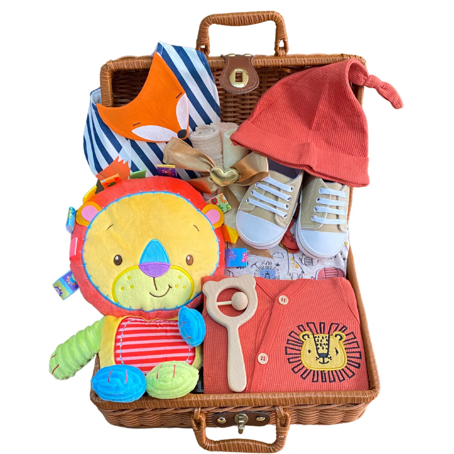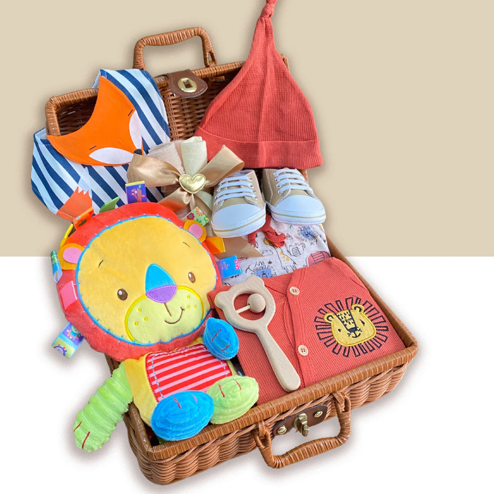 Newborn Shower Gift Set Box Souvenir Baby Cotton Blanket Teething Baby Rattle Milestone Wooden Toy Set