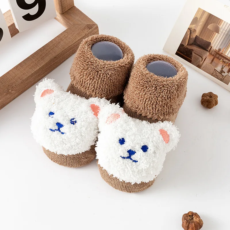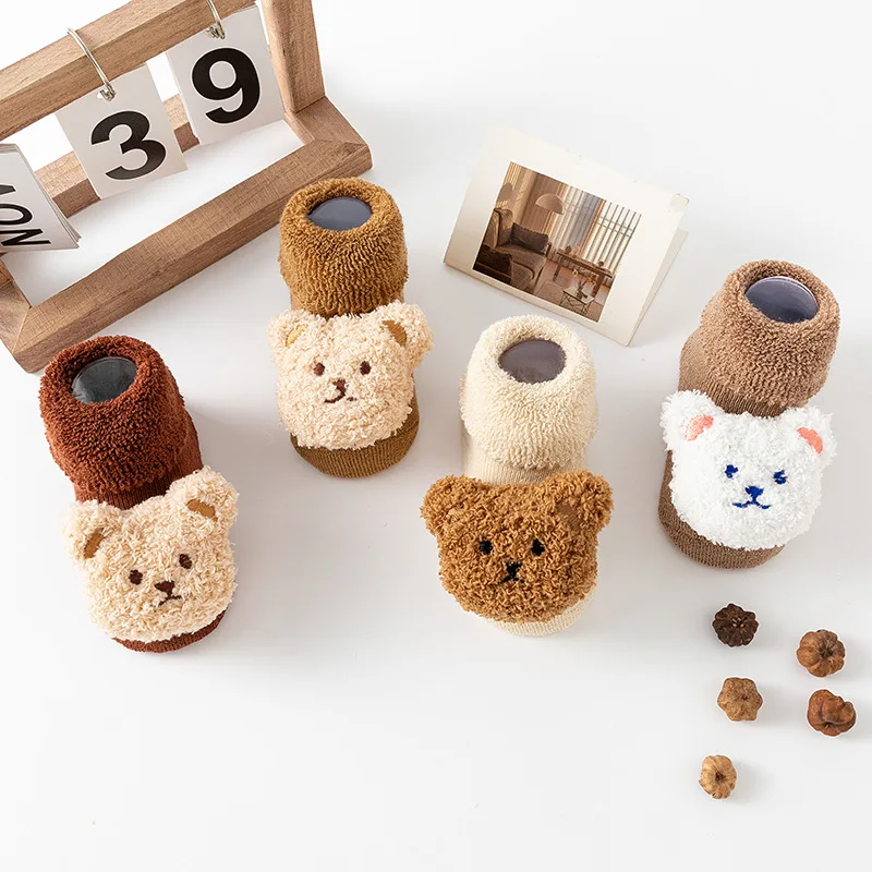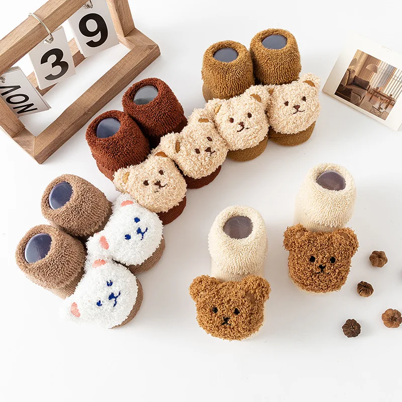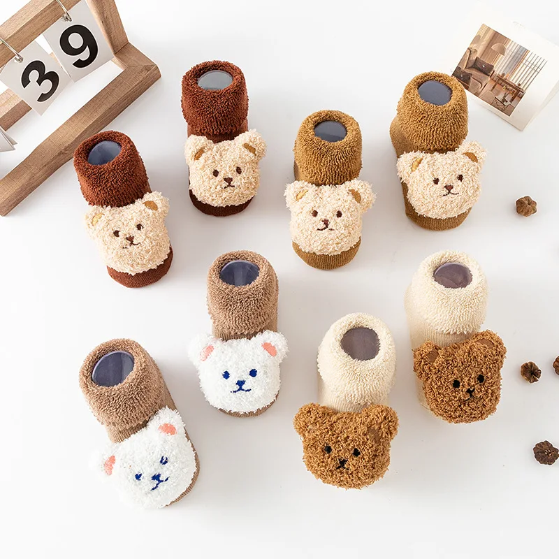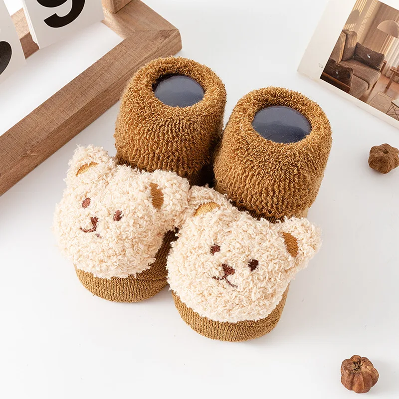 New winter baby thick warm terry socks cartoon bear style baby floor non-slip socks