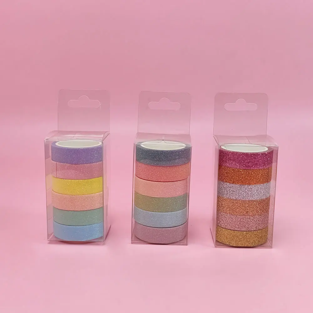 Products Name | GF Fashion Cute 6Rolls Glitter Macaron Colors Washi Tape Set Sparkle Decorative Masking Tapes for Art Scrapbook Decor | |||||