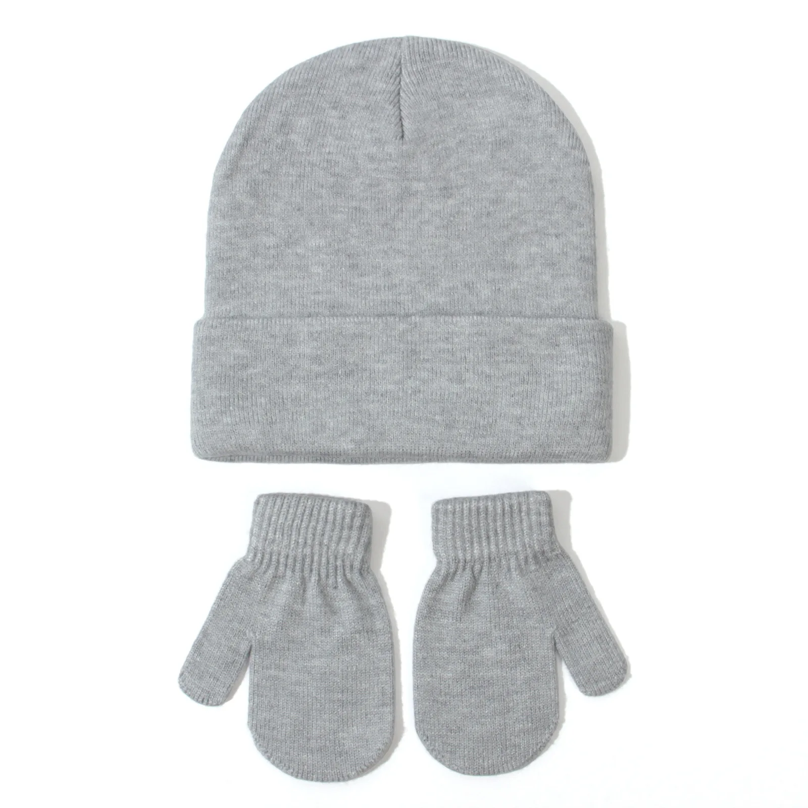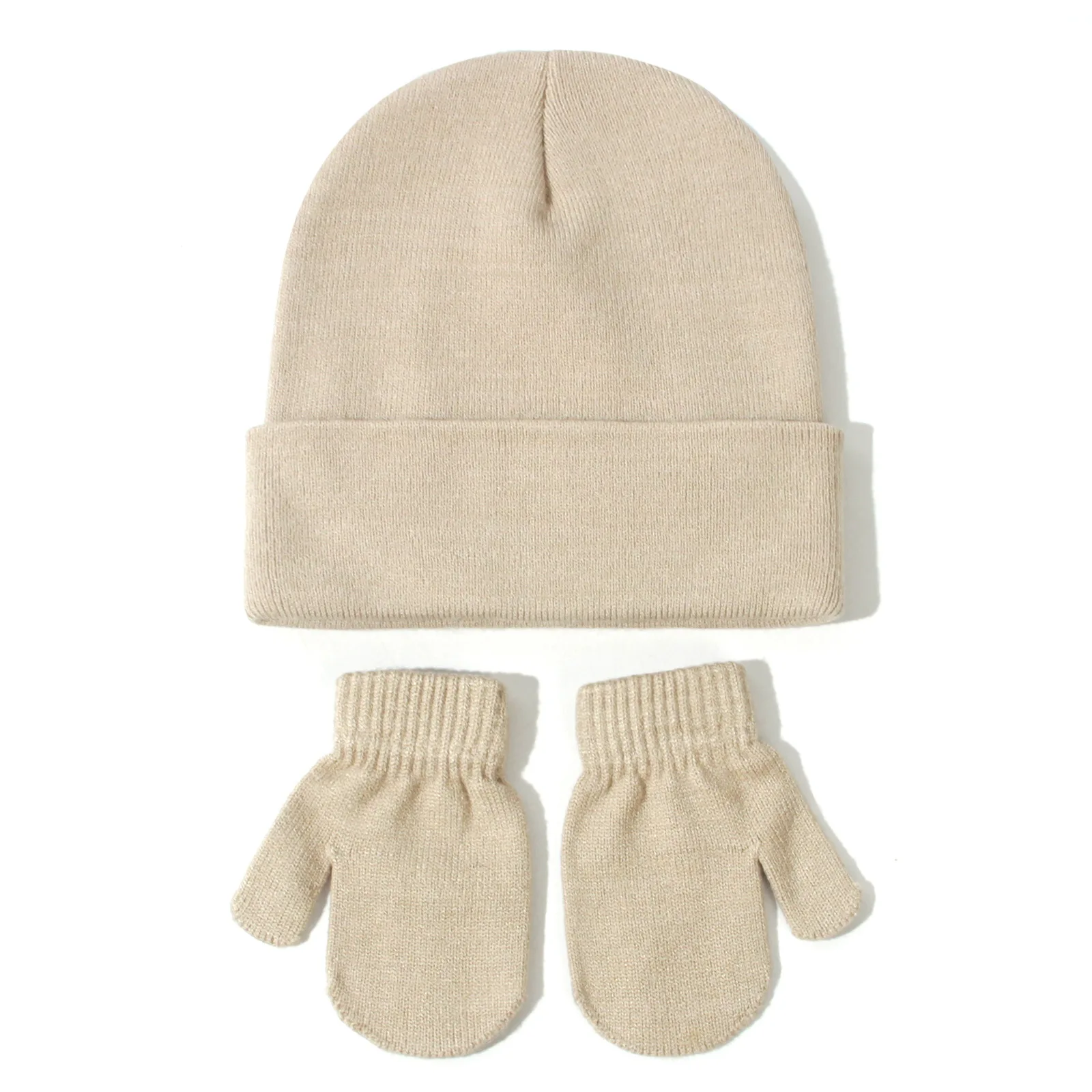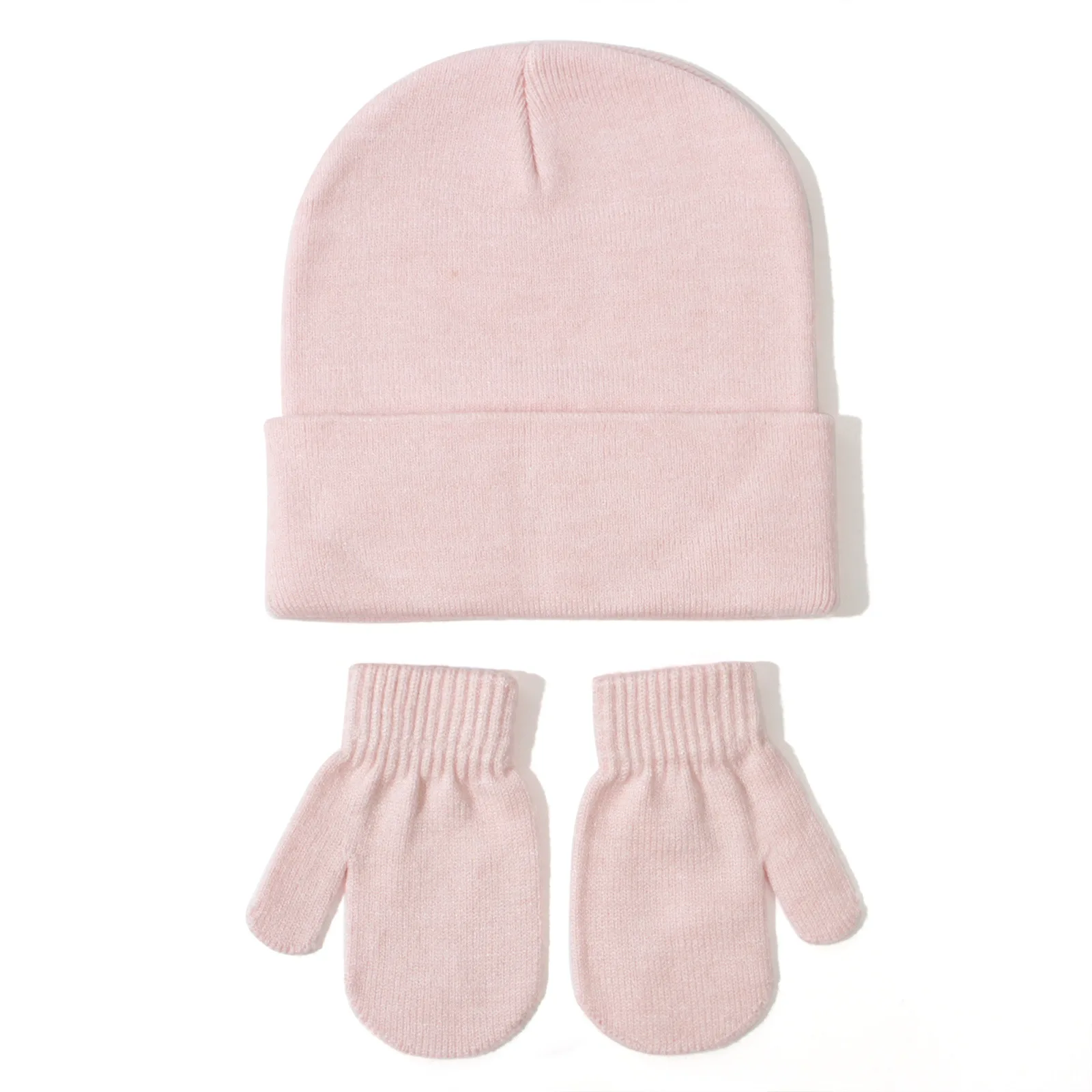 Baby knitted hat and gloves set all-match solid color European and American autumn and winter new children's wool pullover hat