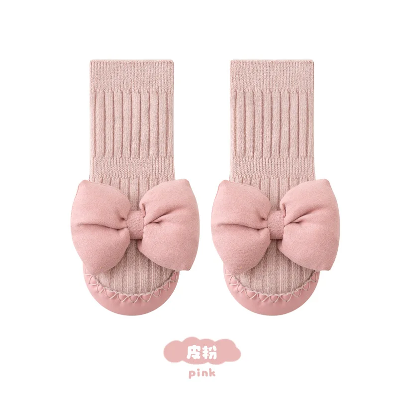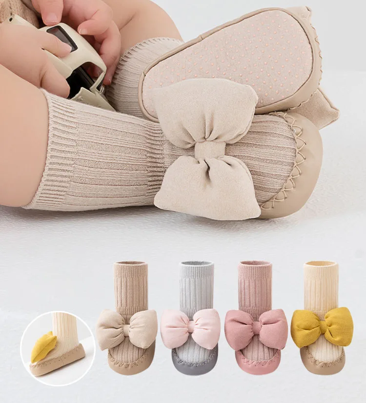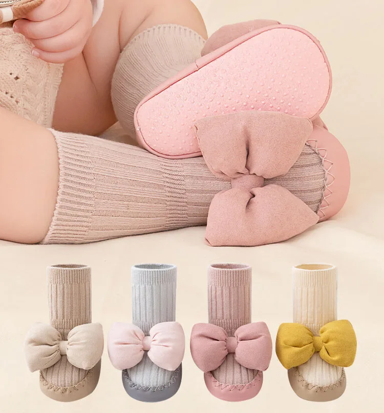 Baby shoes socks newborn floor front toddler shoes baby bow mid-tube soft bottom non-slip shoes