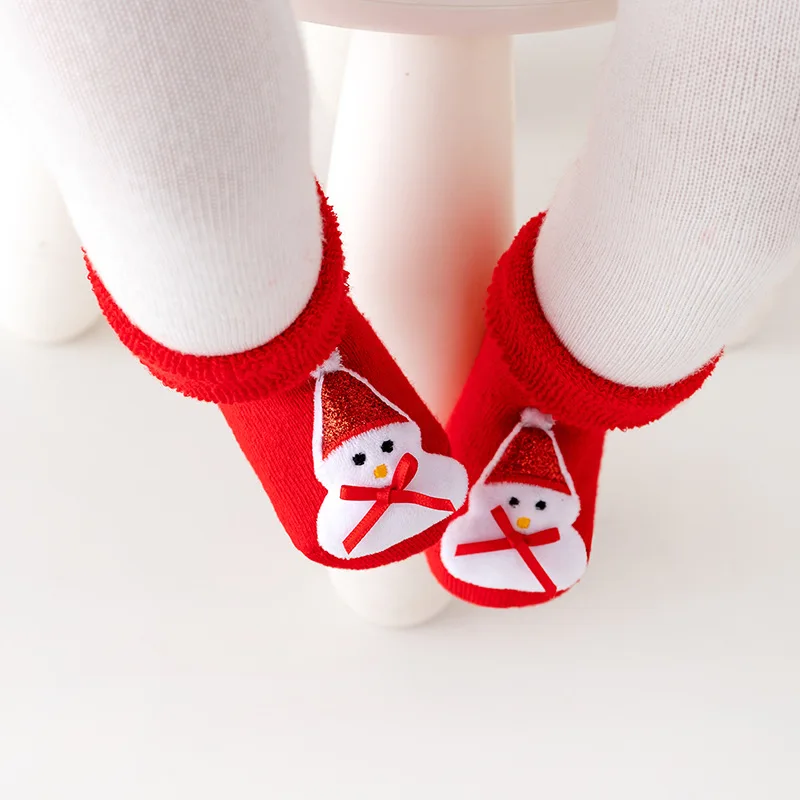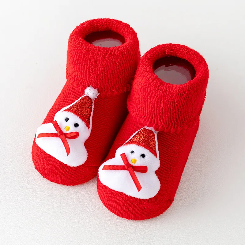 Baby Thick Fleece Winter Warm Terry Socks Newborn Baby Christmas Red Non-slip Floor Middle-tube Gift Socks