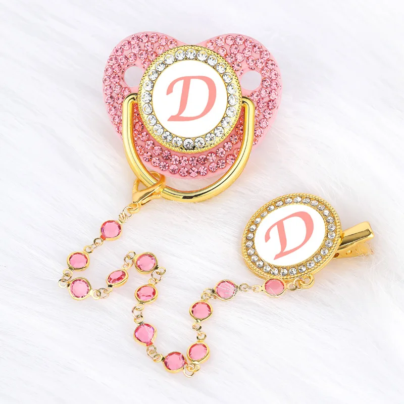 High-grade pink with diamond letter baby pacifier dot drill baby comfort play mouth with glass bead chain