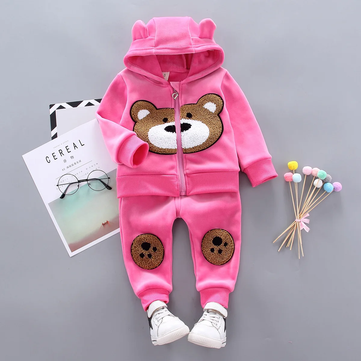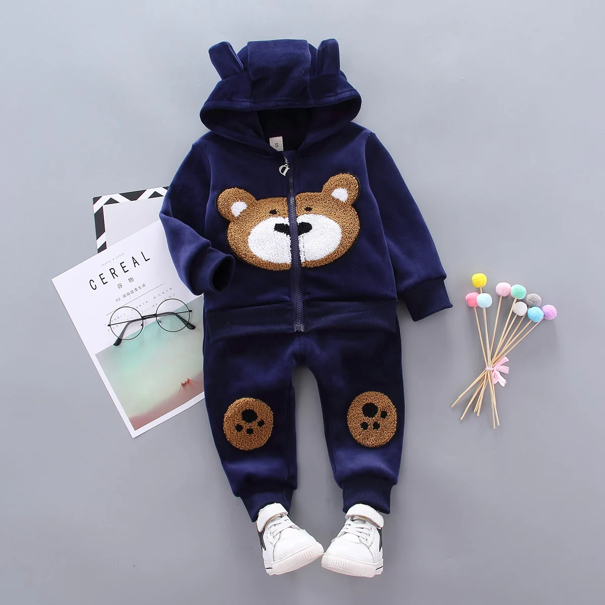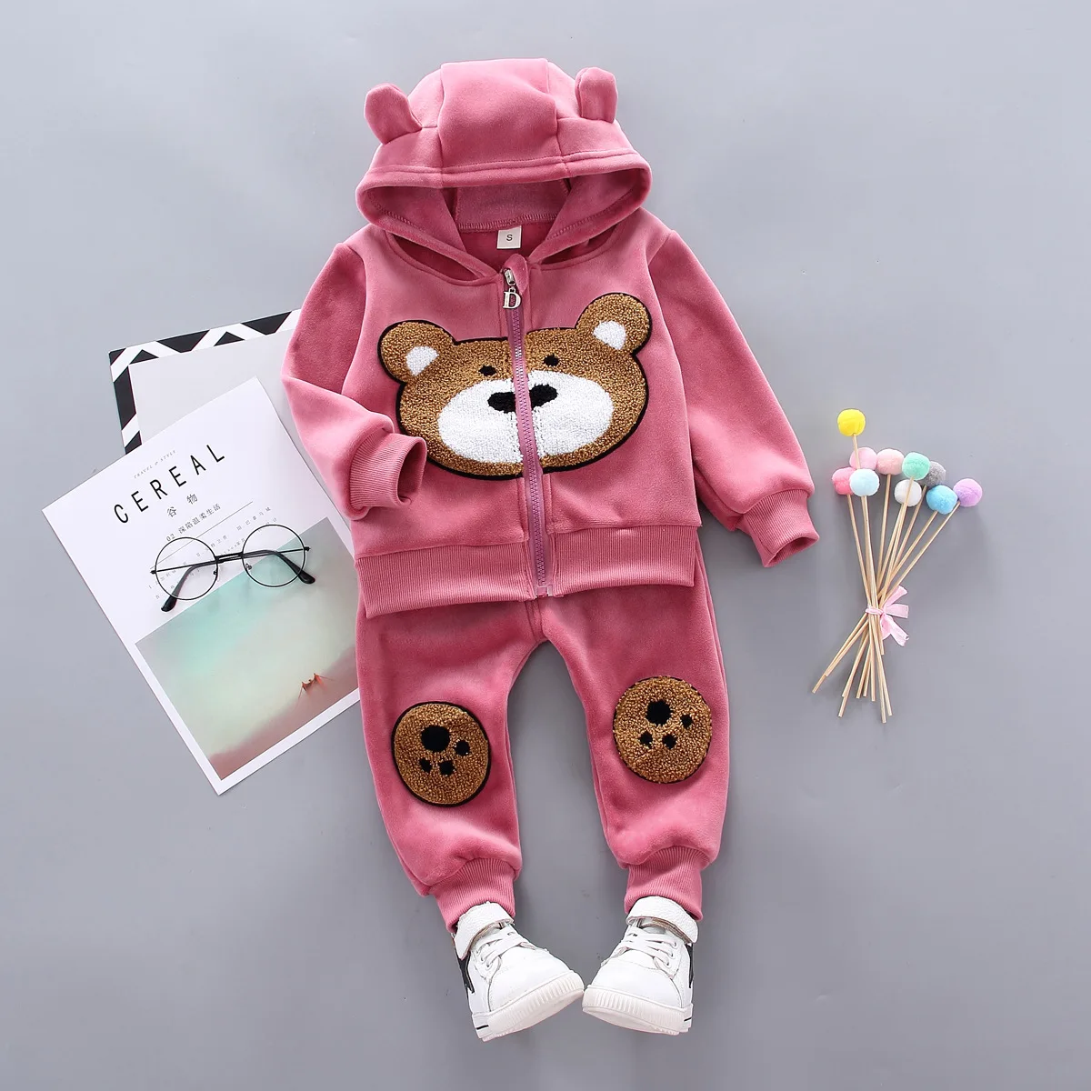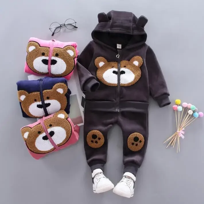 Autumn Fashion Newest Girls Clothes Coat Pants 2Pcs/Set Cotton Bear Kids Children Clothing Sets 1-4 Years Kids Tracksuit Set
