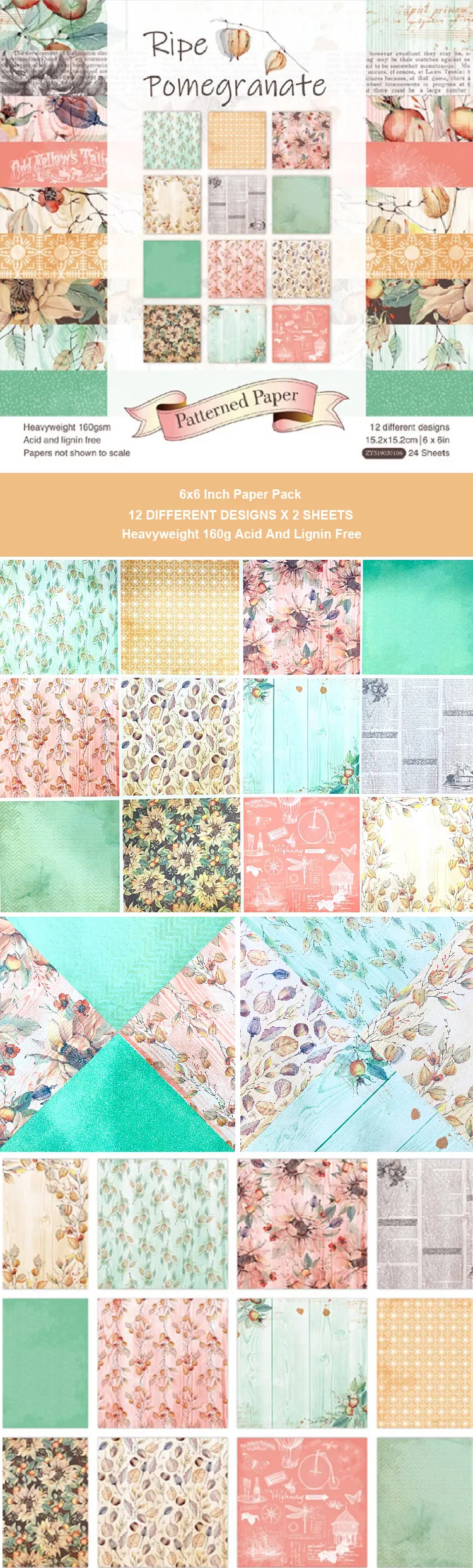GF New Design 6"X6" Ripe Pomegranate Scrapbooking Paper Handmade DIY Craft Background Cardstock Scrapbook Paper Pack