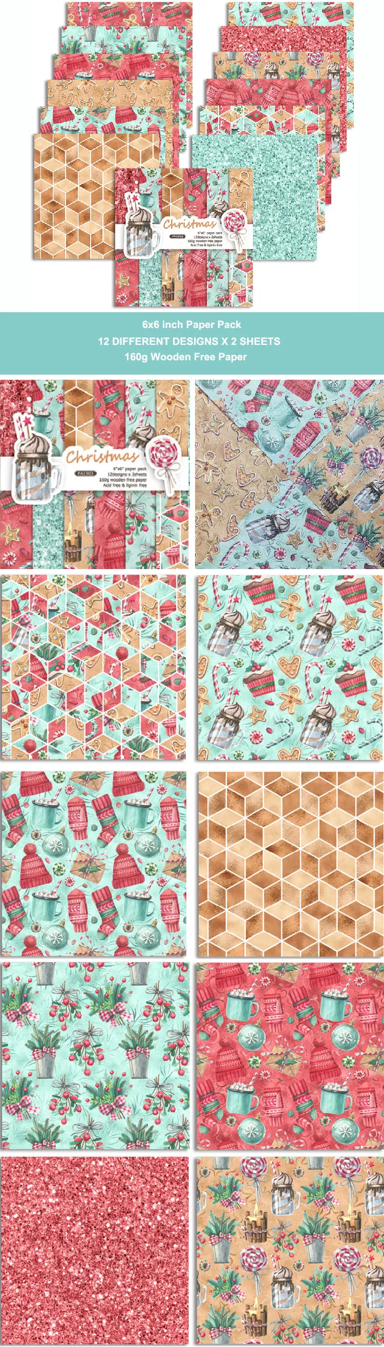 Products Name | GF Christmas 6 inch 24 sheets DIY craft scrapbooking paper background papel Scrapbook Paper | |||||