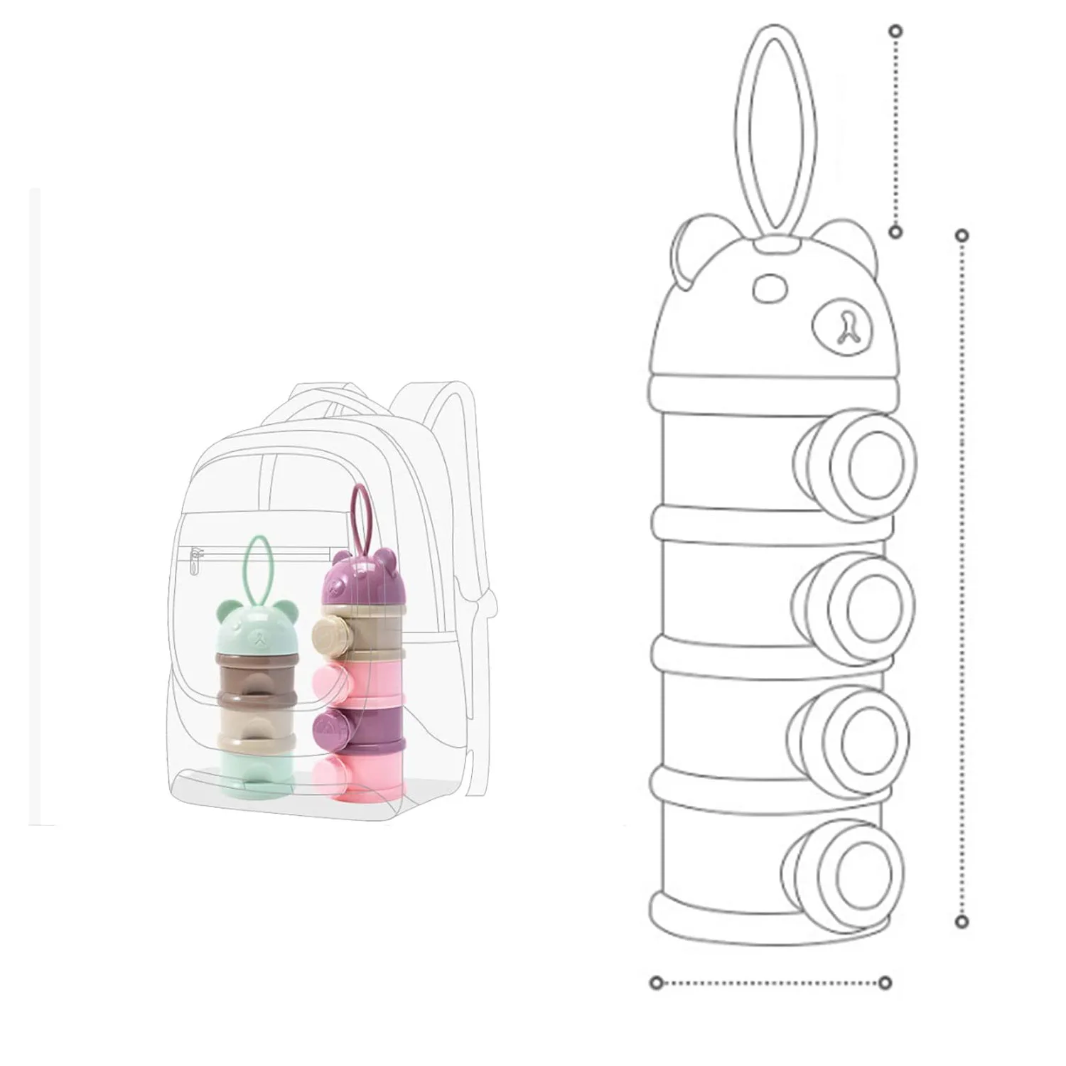 Wholesale 3 Layers 4 Layers Cartoon Bear Style Portable Kid Baby Snack Food Storage Box Container Plastic Baby Milk Powder Box