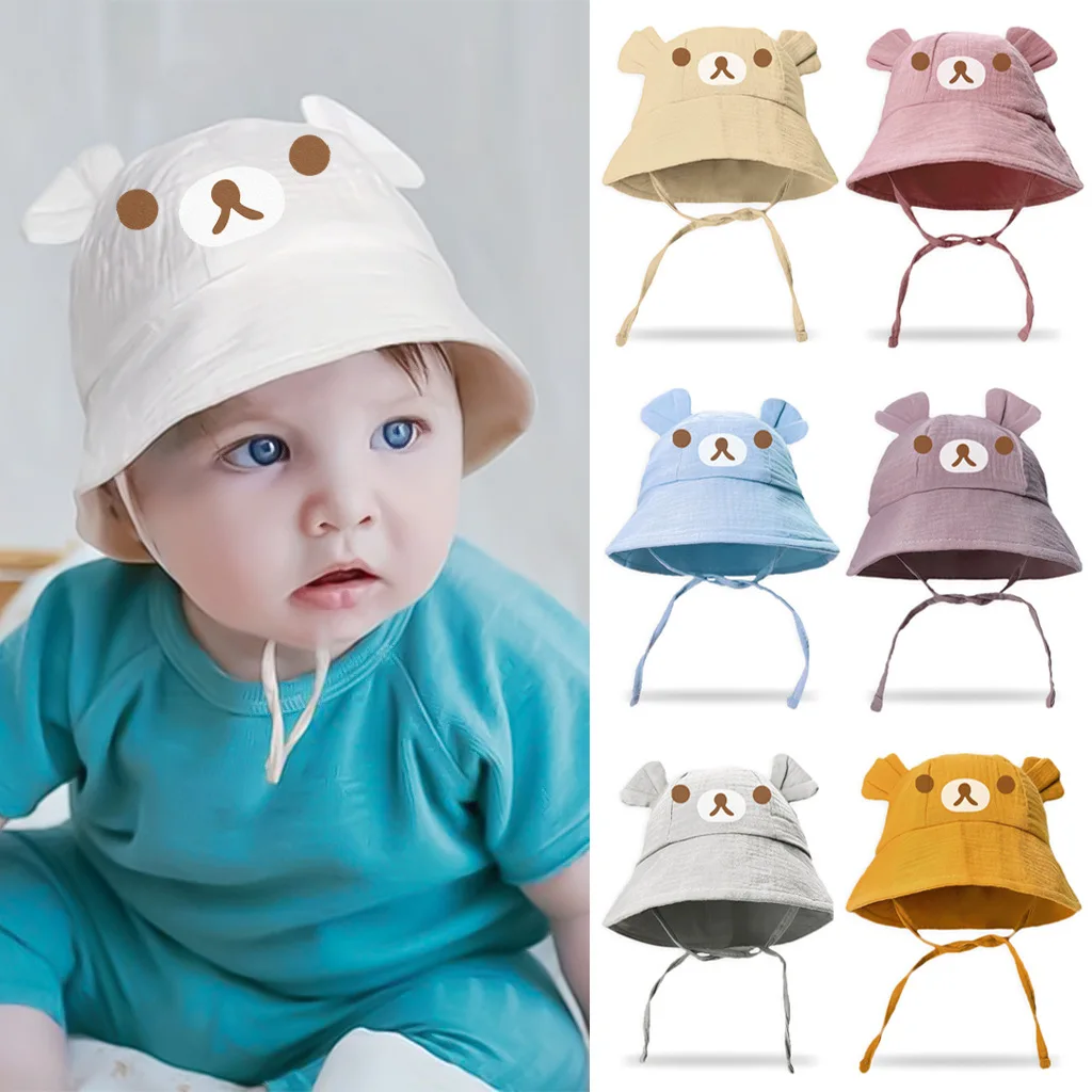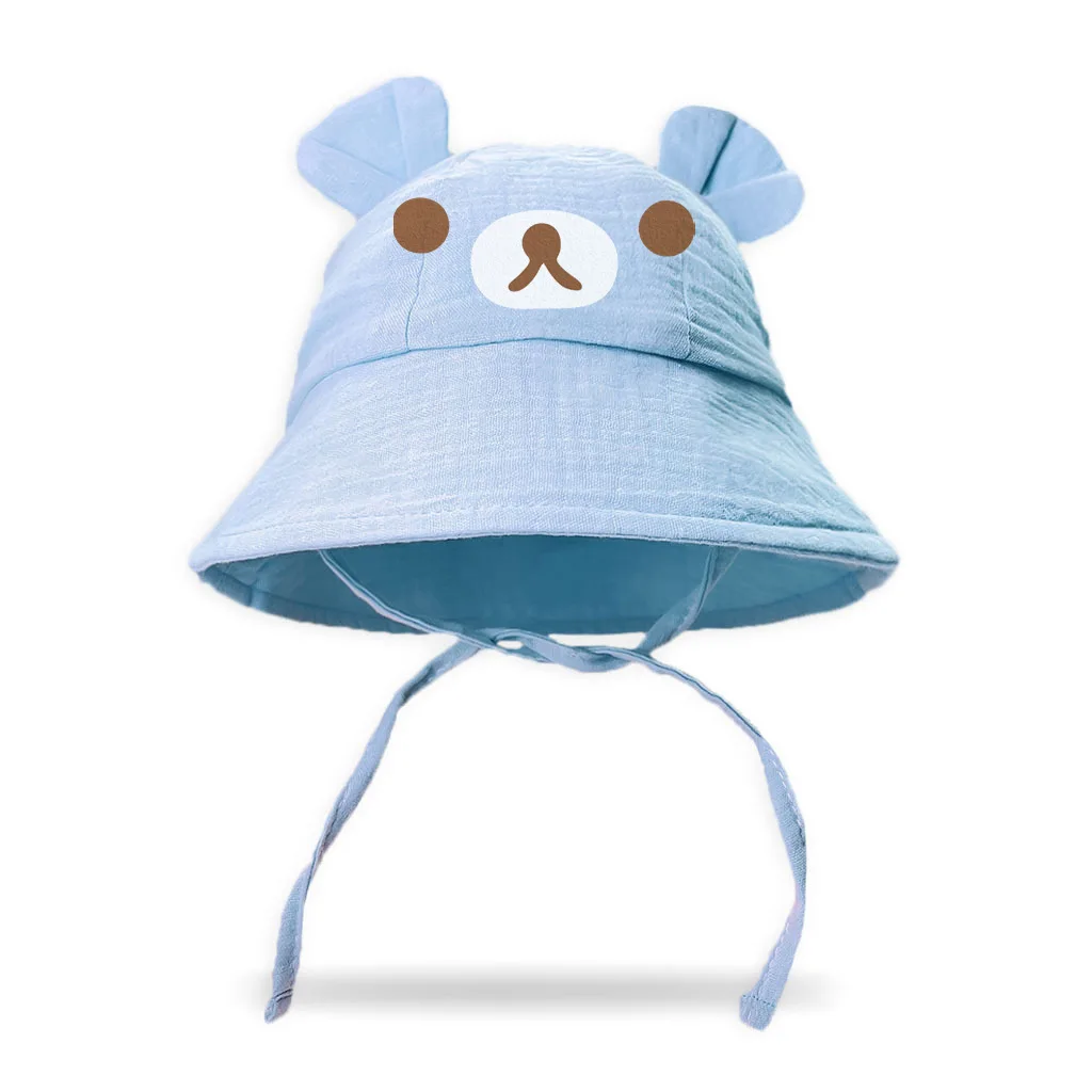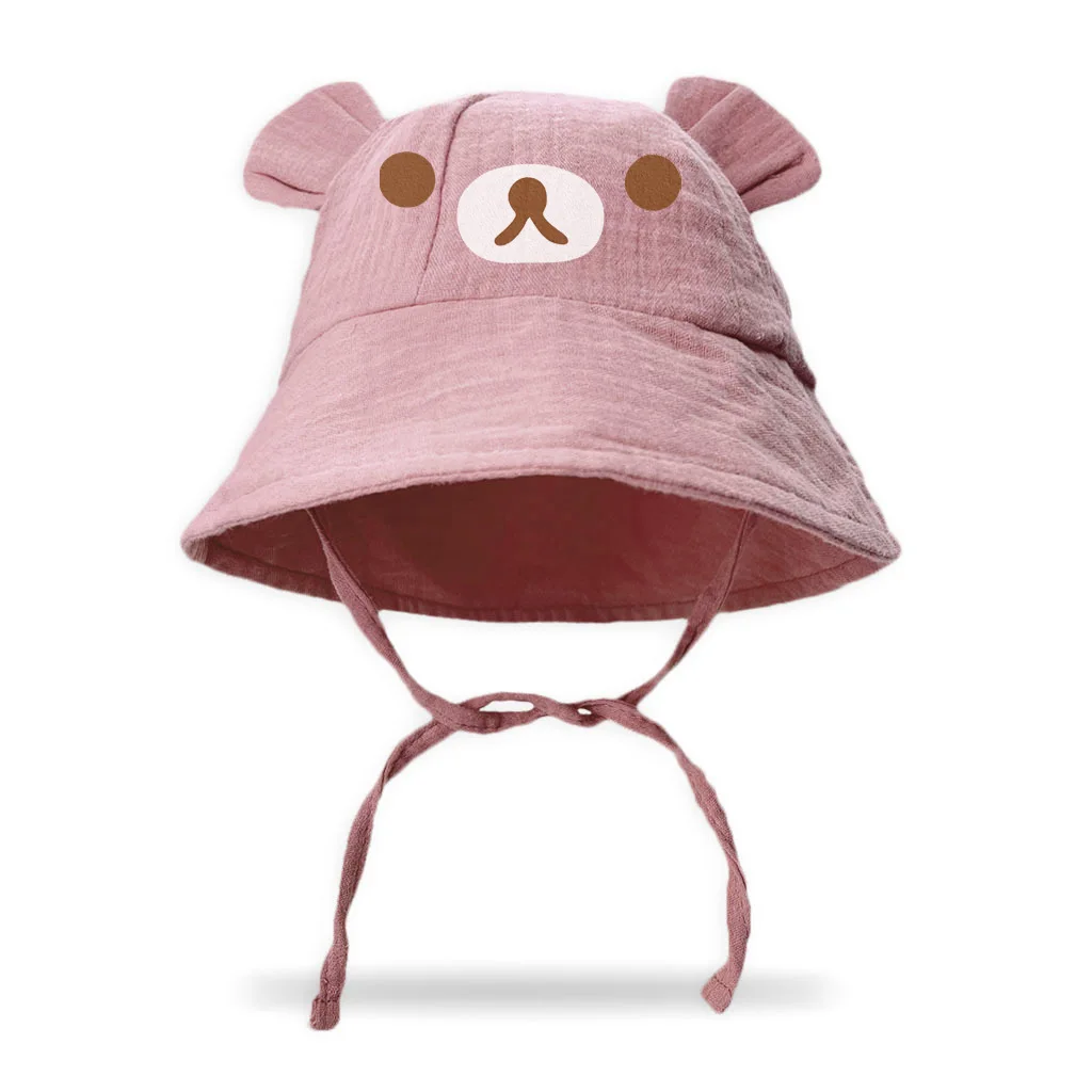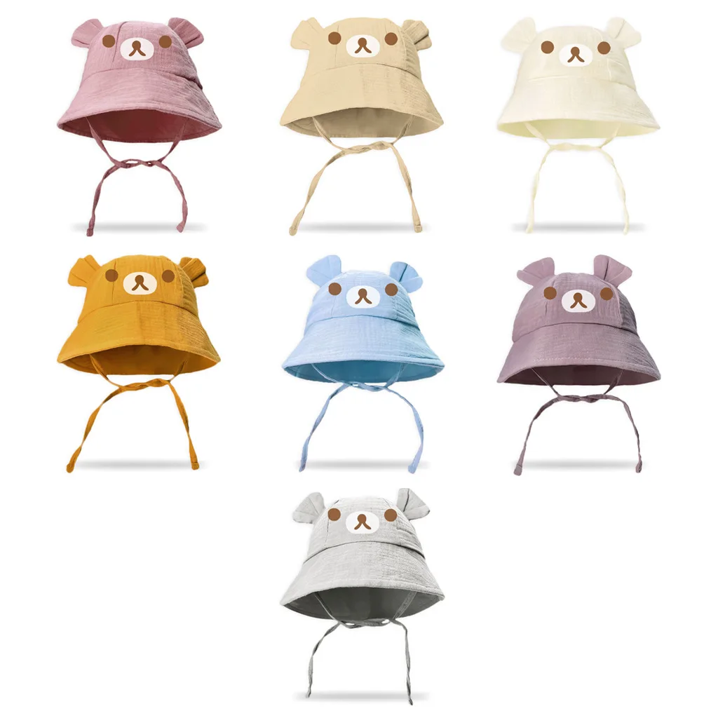 New style baby gauze basin hat baby hot stamping bear fisherman hat children's sun hat