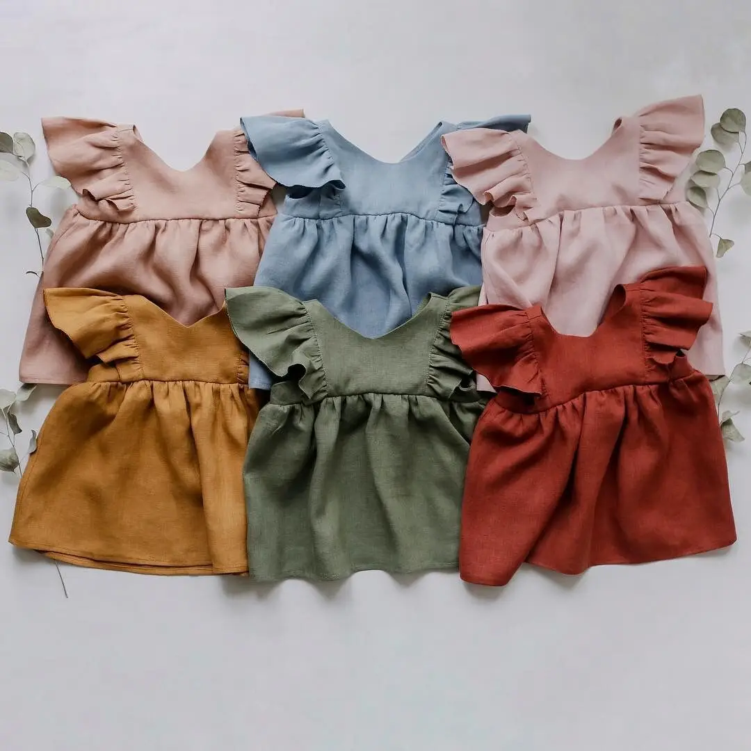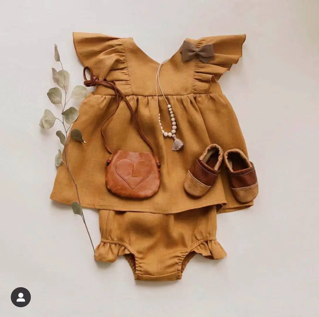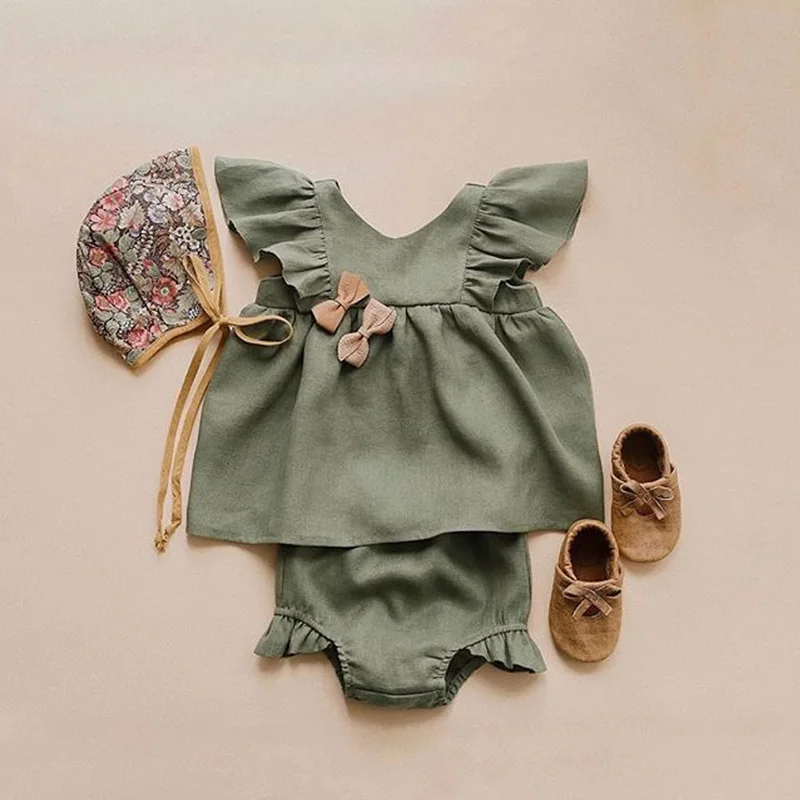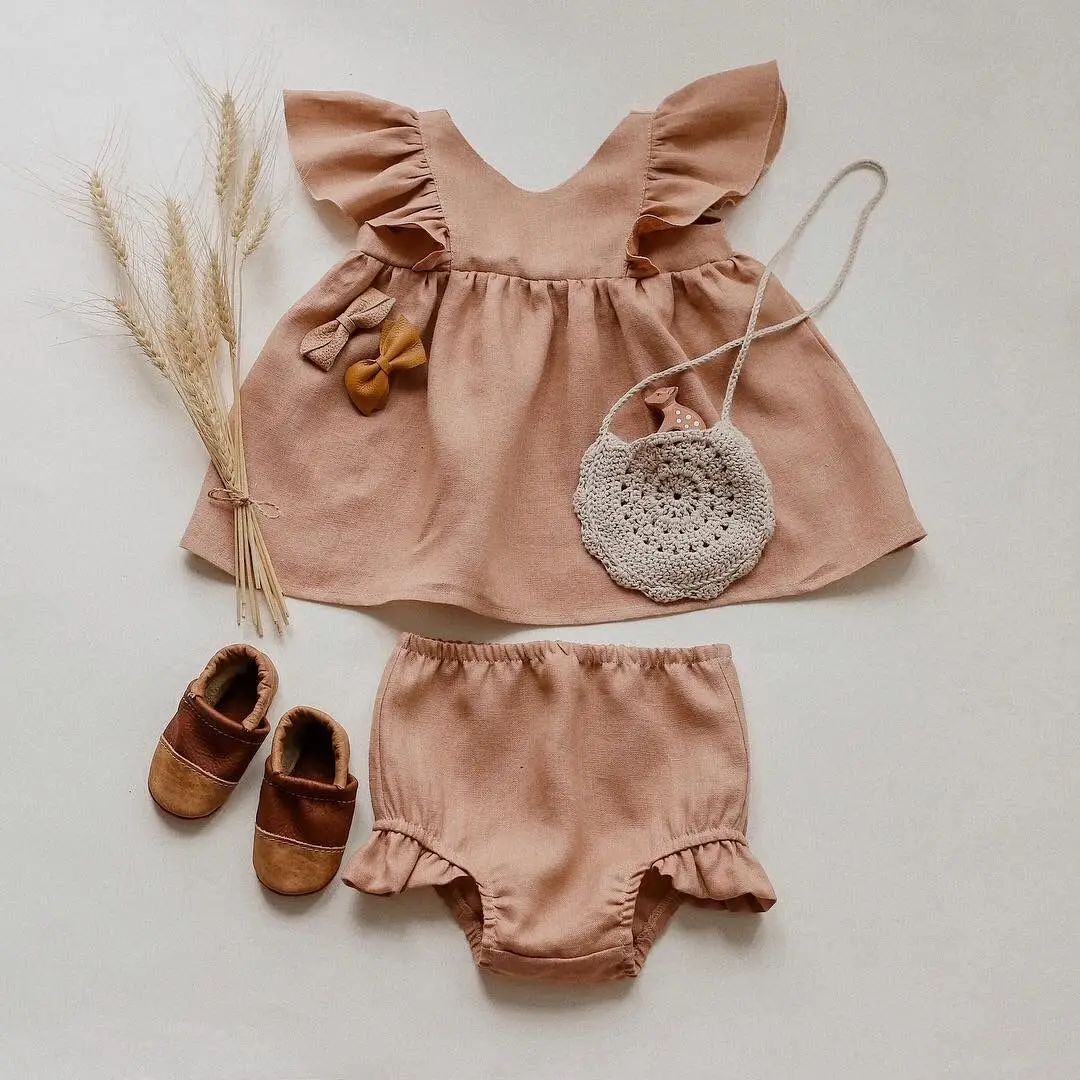 Cotton and Linen Princess Dress Girls Dress Summer Vest Dress Ruffled Triangle Shorts 2-piece Set