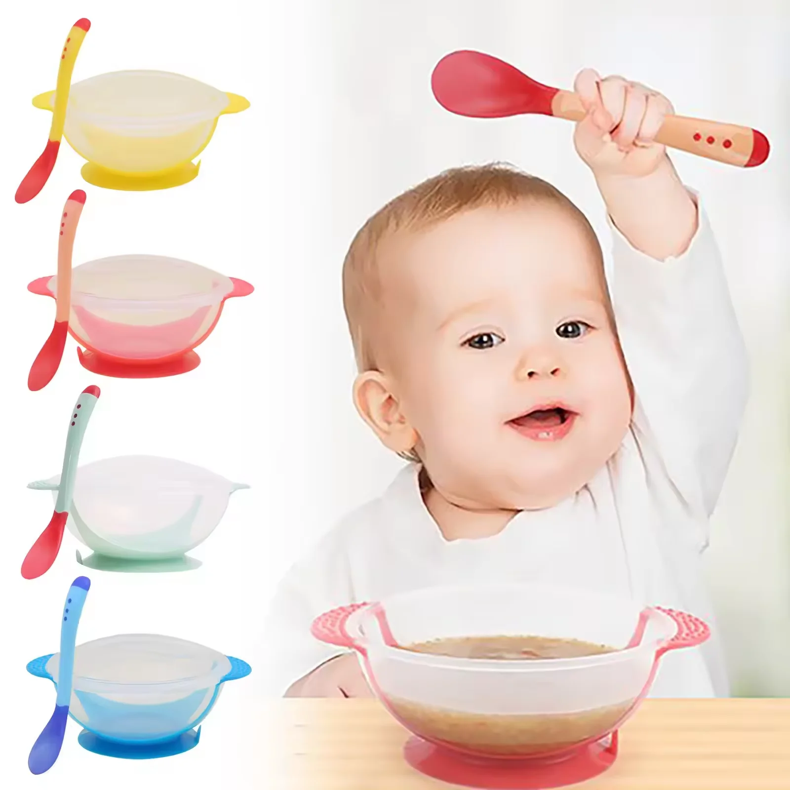 Baby suction cup bowl with temperature sensing spoon set Baby and child training bowl baby bowl set