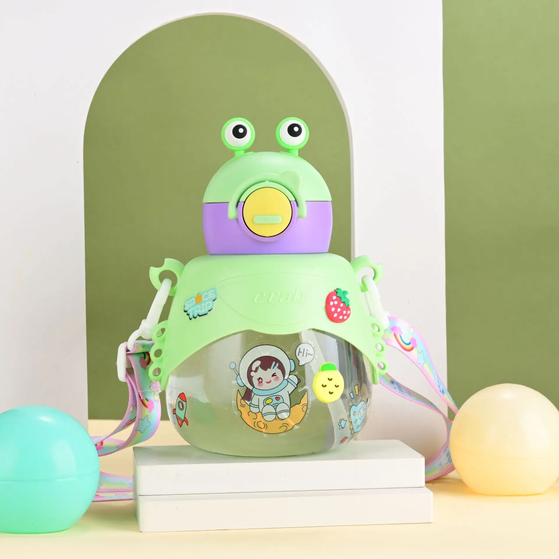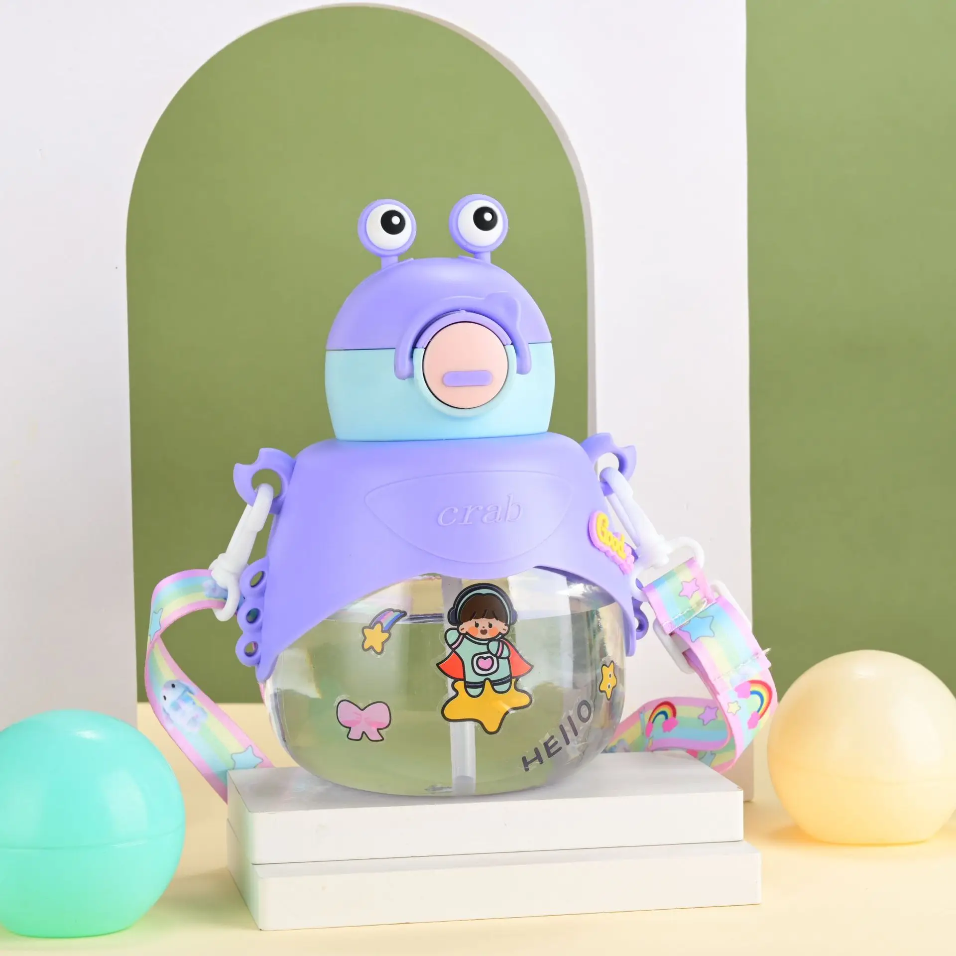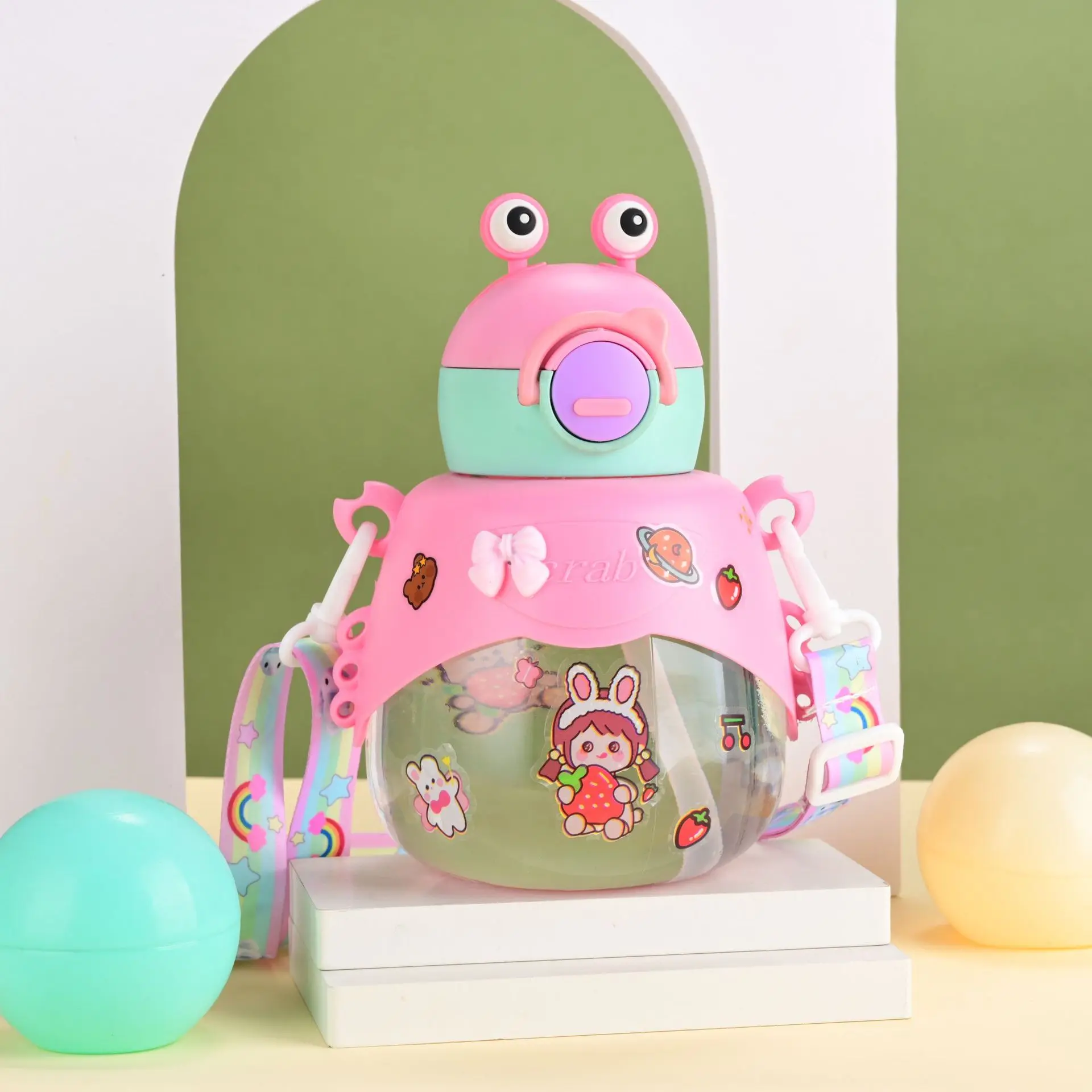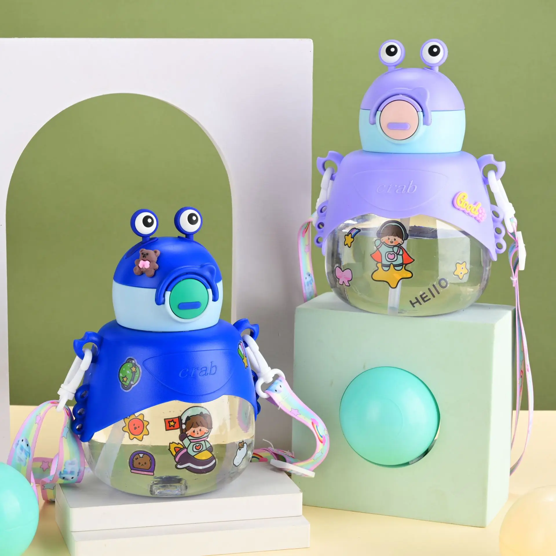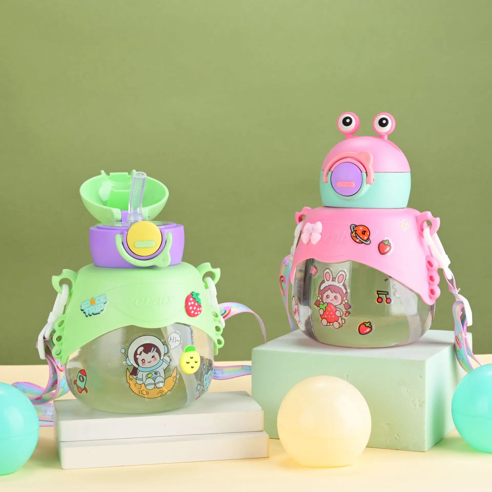 Children's water cup creative cartoon doll plastic cup large capacity student portable straw cup