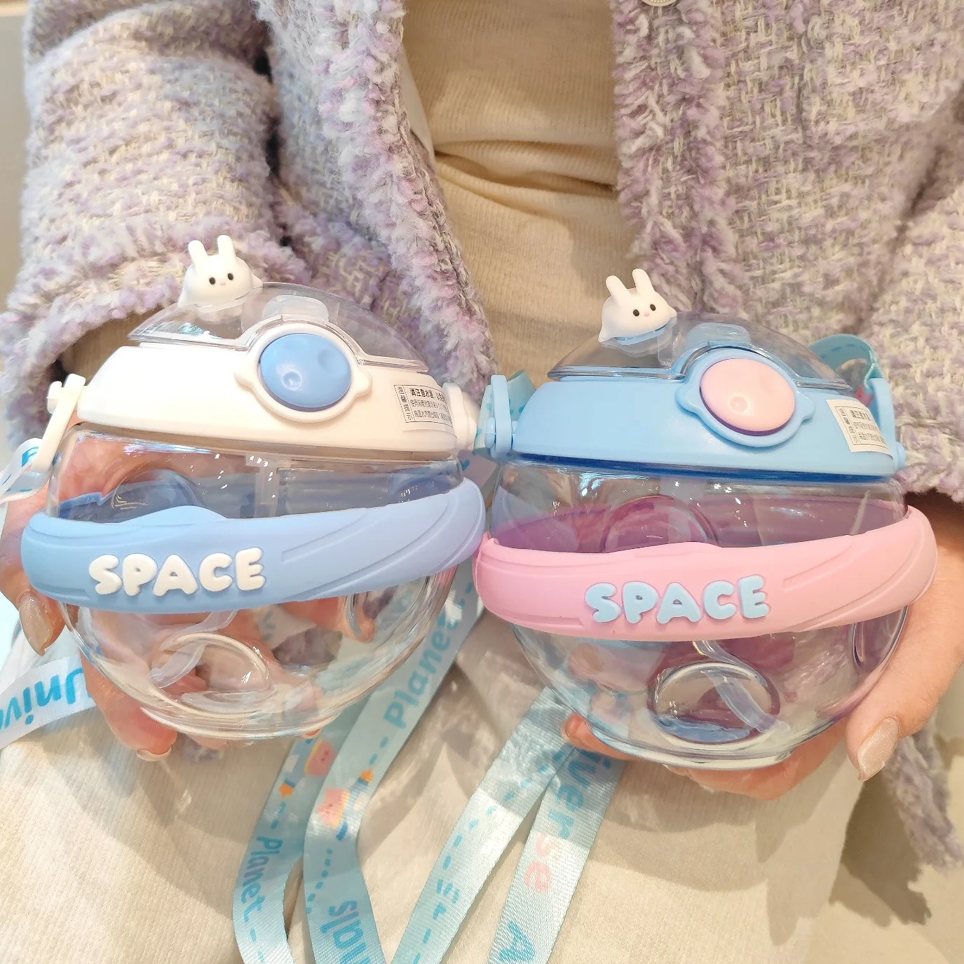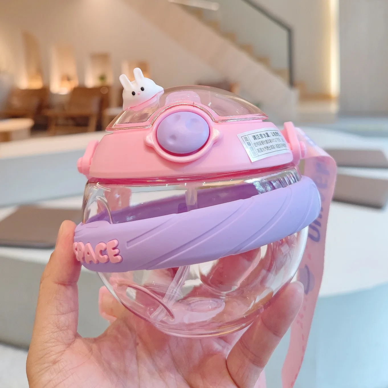 Creative round ball plastic cup cute bunny high value big belly cup cute children's straw exquisite gift cup