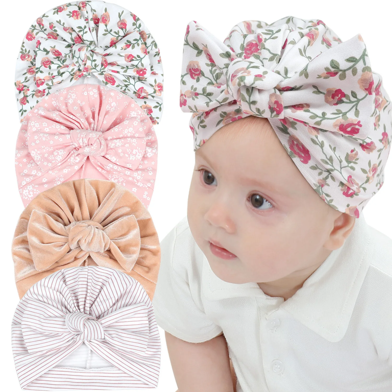 Baby baby hat 0-6 months cotton pullover big bow print pullover hat European and American children Indian hat