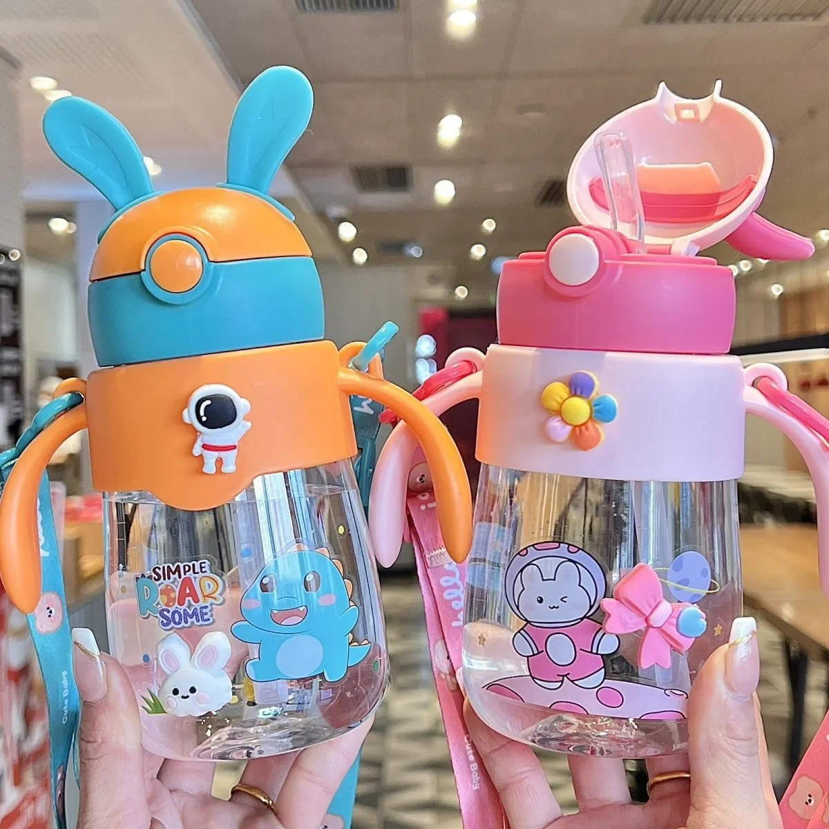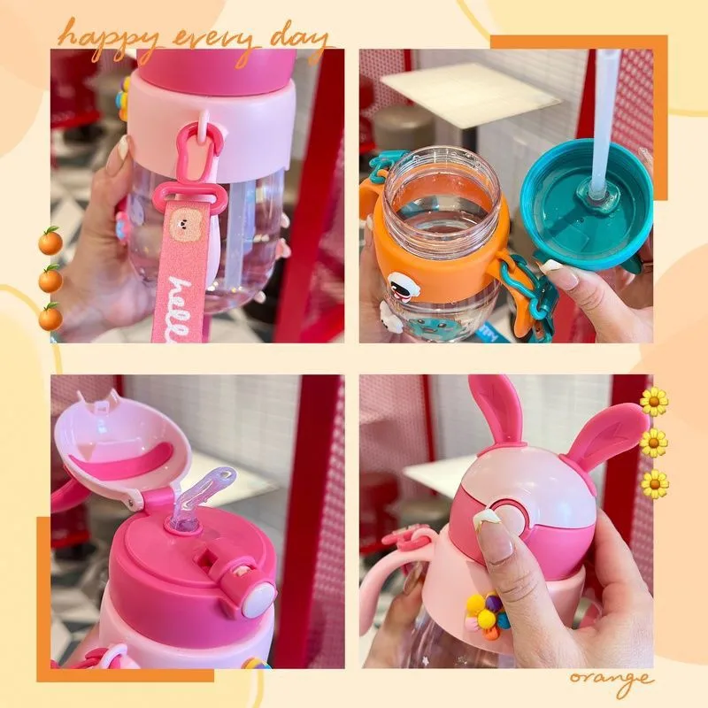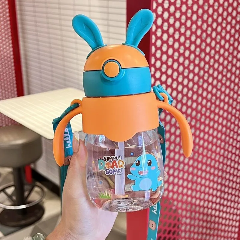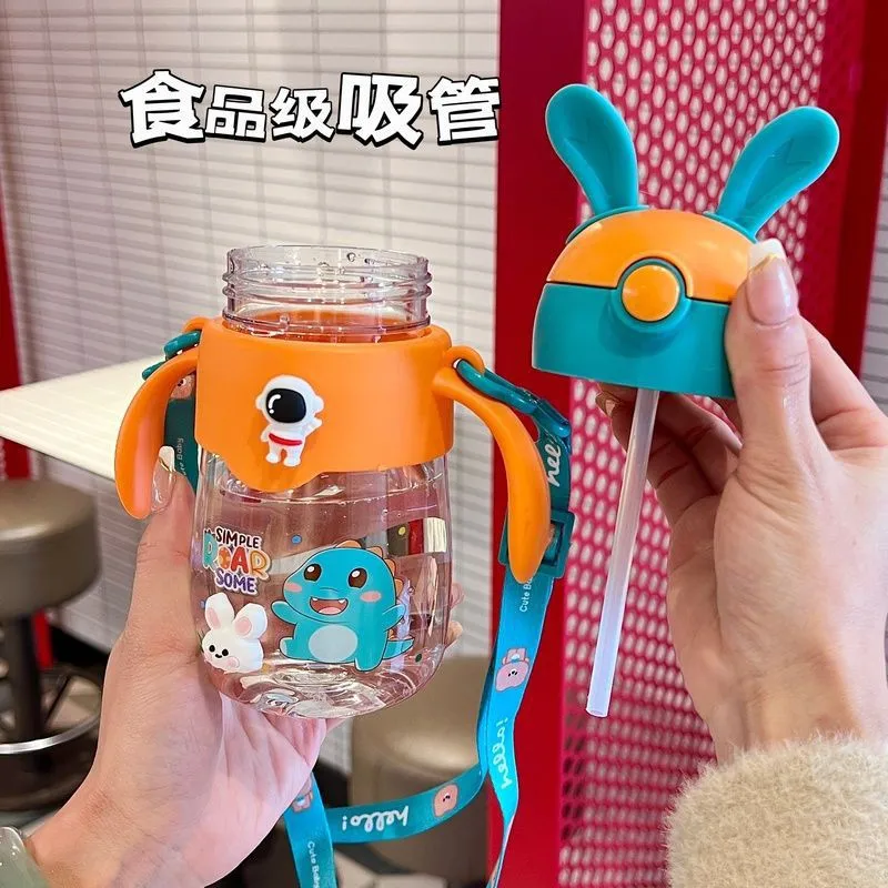 Children's straw cup cute bunny baby drinking cup girl's high-looking kindergarten school special kettle